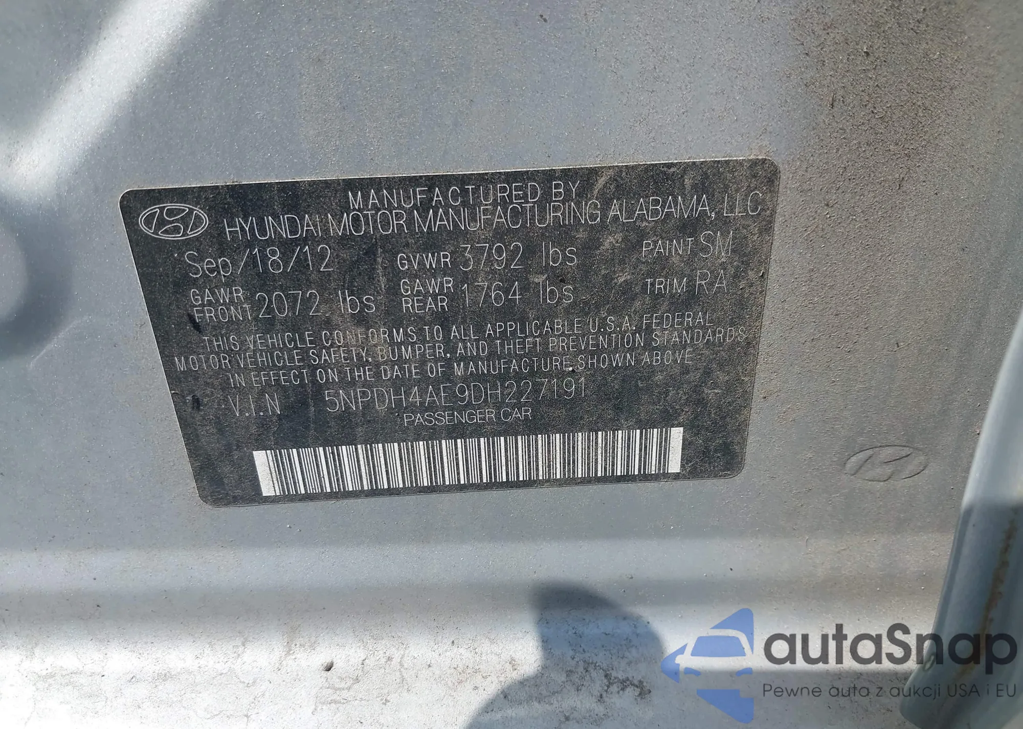 VIN: 5NPDH4AE9DH227191