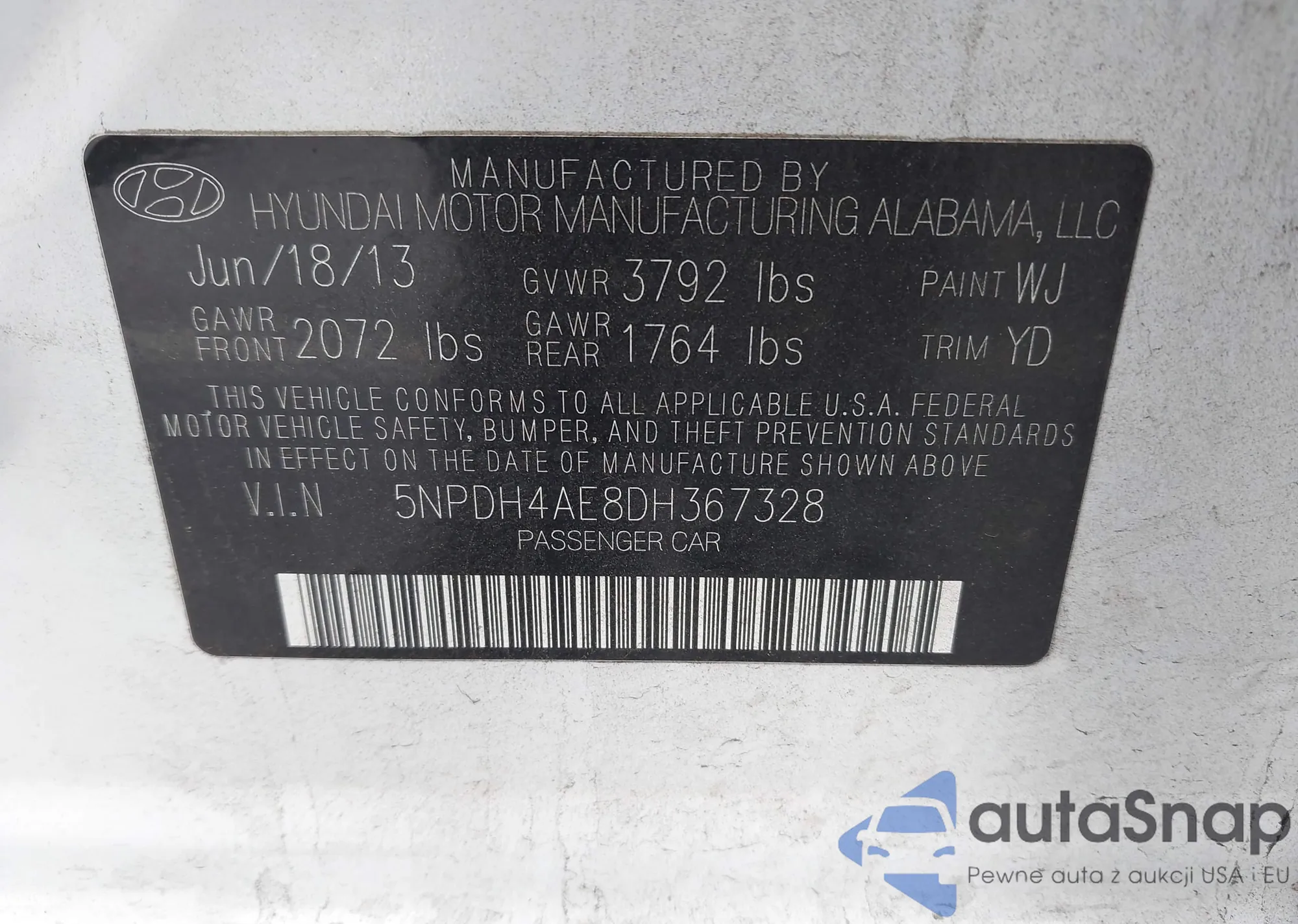 VIN: 5NPDH4AE8DH367328