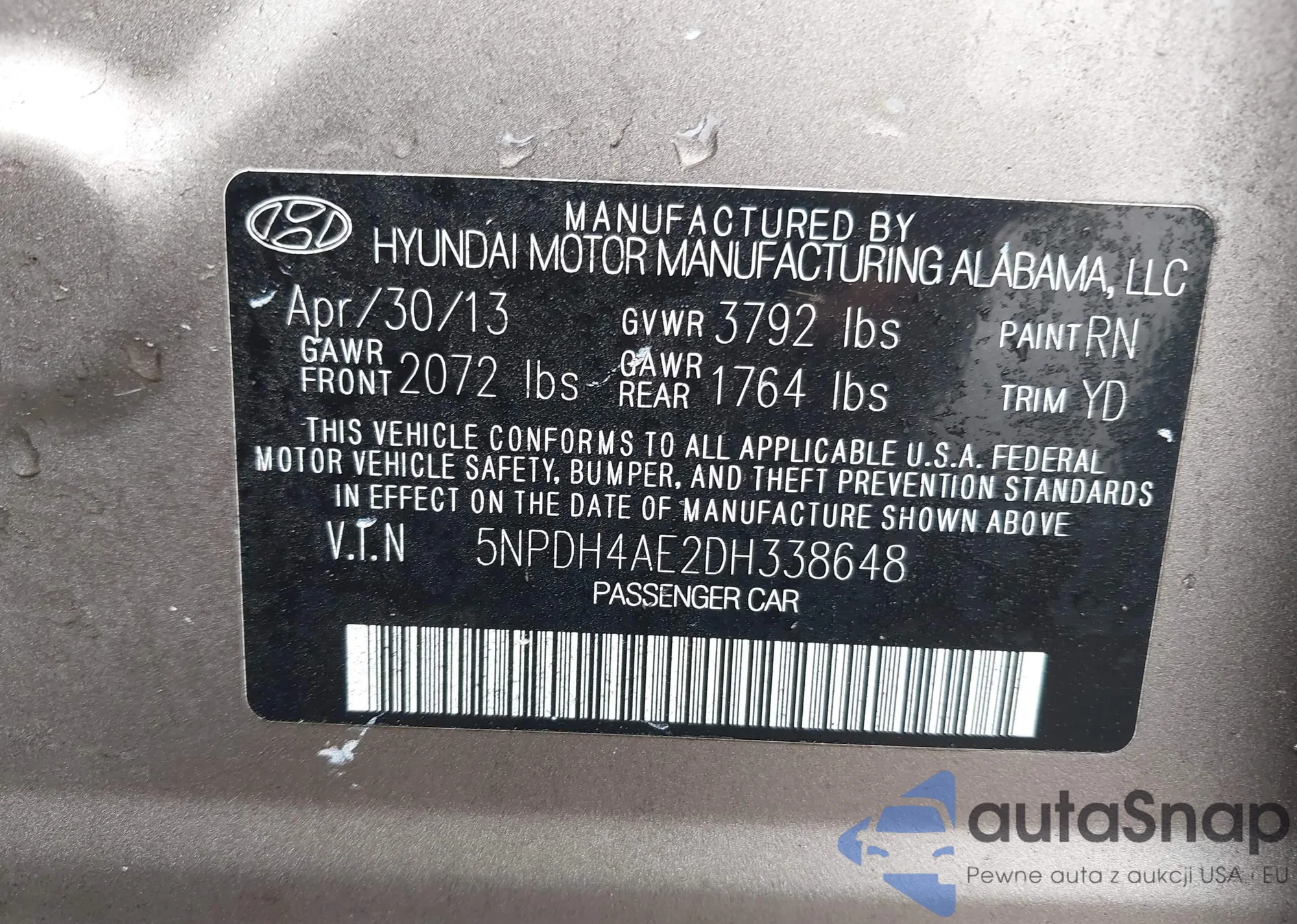 VIN: 5NPDH4AE2DH338648