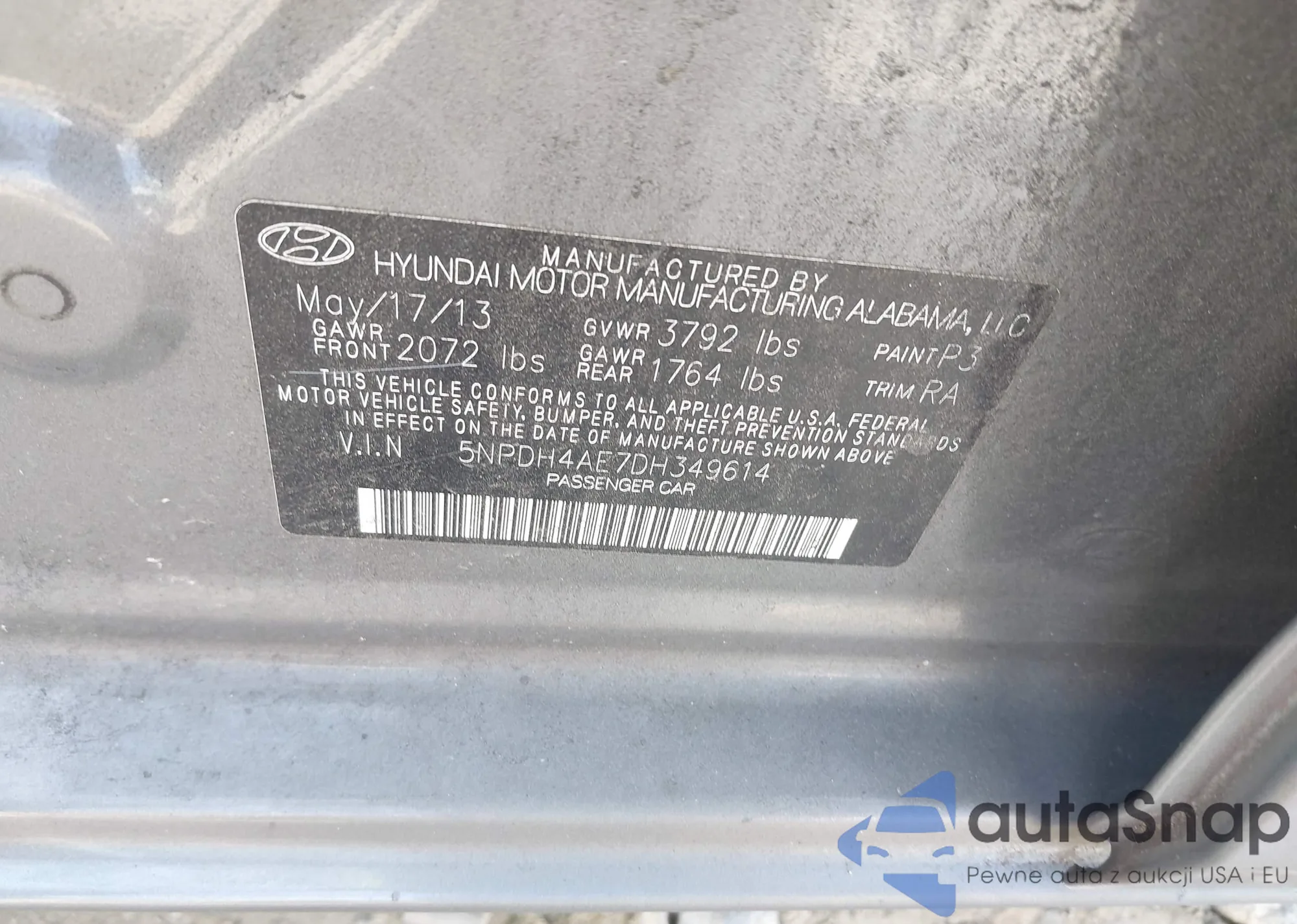 VIN: 5NPDH4AE7DH349614