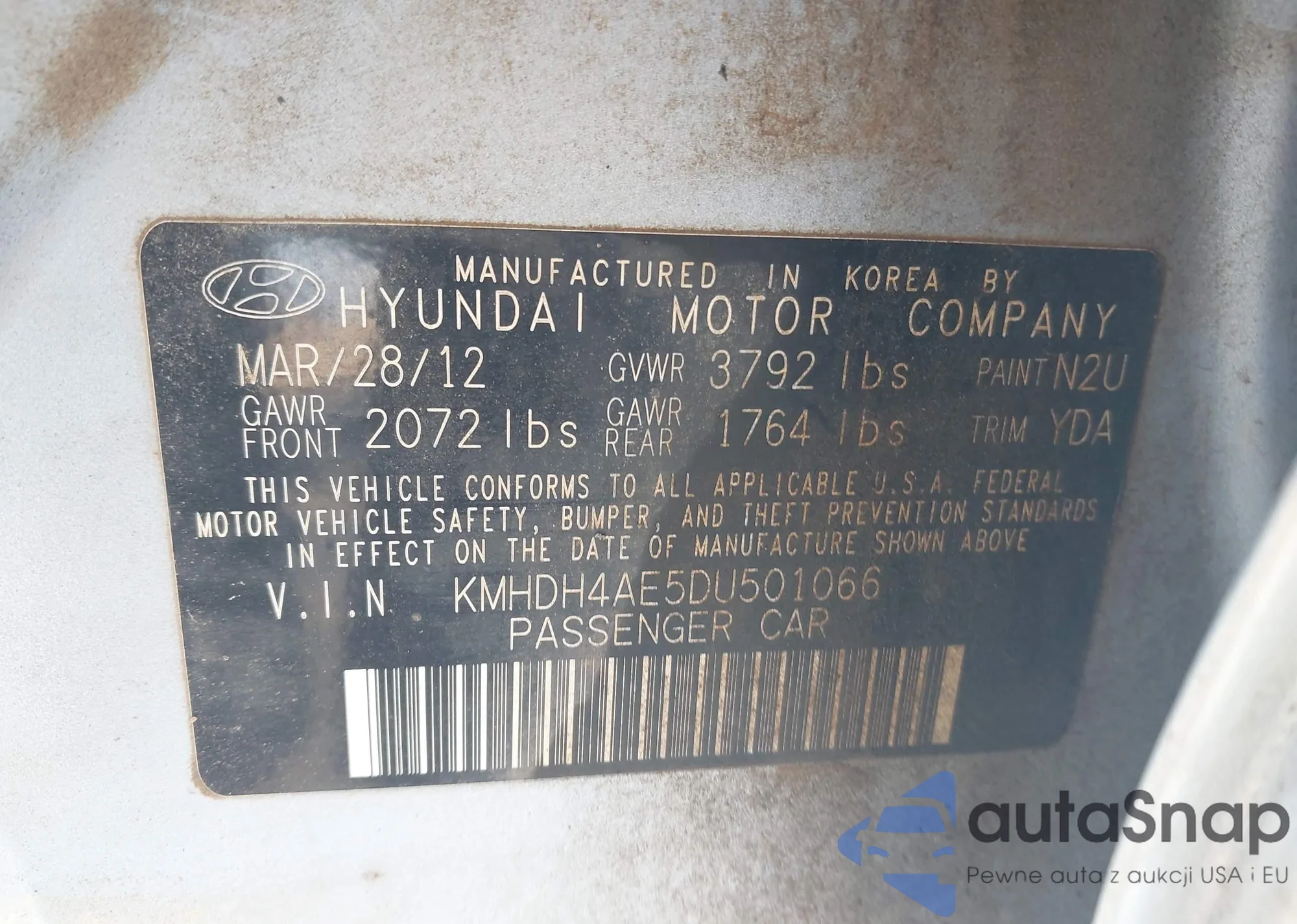 Автомобиль Hyundai Elantra 2013 (VIN KMHDH4AE5DU501066) ранее не участвовал в торгах. Документы чистые, пробег соответствует или ниже среднего по рынку. Продаётся страховой компанией — рекомендуем покупку. Доставка в порт займет около 6–8 недель.