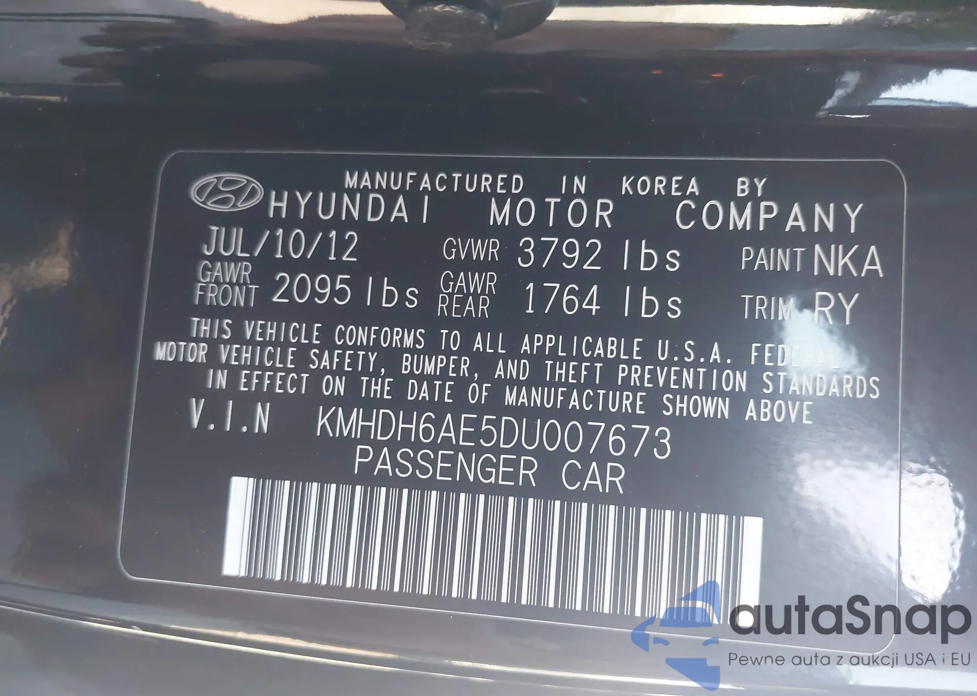 Автомобиль Hyundai Elantra 2013 (VIN KMHDH6AE5DU007673) ранее не участвовал в торгах. Документы чистые, пробег соответствует или ниже среднего по рынку. Продаётся страховой компанией — рекомендуем покупку. Доставка в порт займет около 6–8 недель.