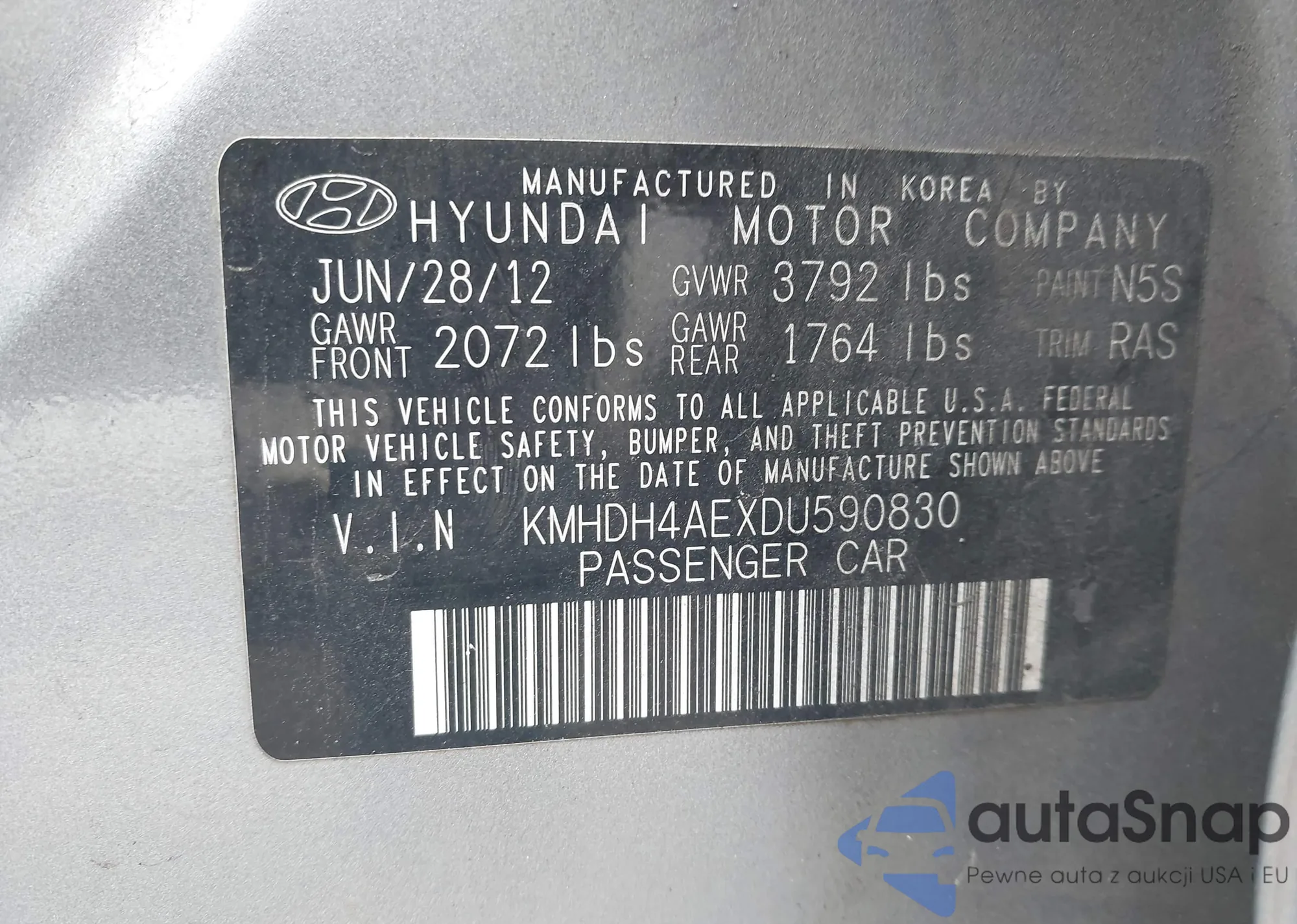 Автомобиль Hyundai Elantra 2013 (VIN KMHDH4AEXDU590830) ранее не участвовал в торгах. Документы чистые, пробег соответствует или ниже среднего по рынку. Продаётся страховой компанией — рекомендуем покупку. Доставка в порт займет около 6–8 недель.