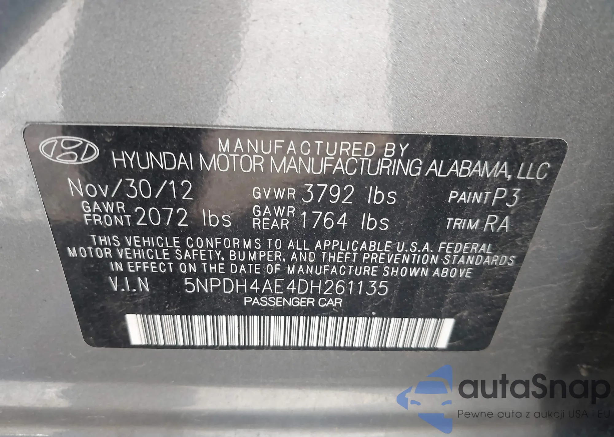 Автомобиль Hyundai Elantra 2013 (VIN 5NPDH4AE4DH261135) ранее не участвовал в торгах. Документы чистые, пробег соответствует или ниже среднего по рынку. Продаётся страховой компанией — рекомендуем покупку. Доставка в порт займет около 6–8 недель.
