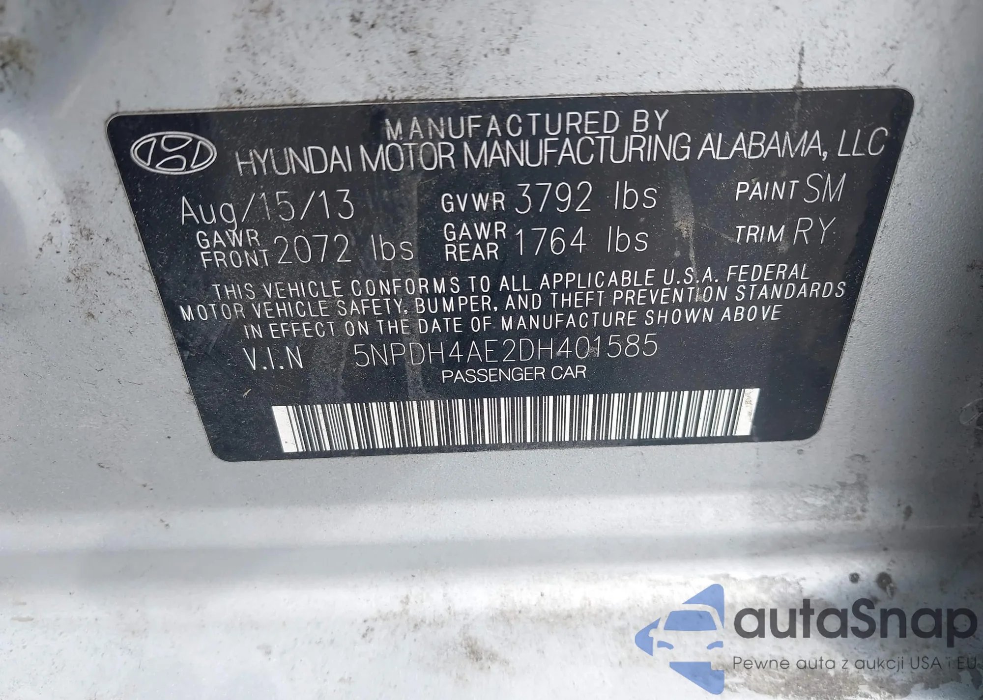 VIN: 5NPDH4AE2DH401585
