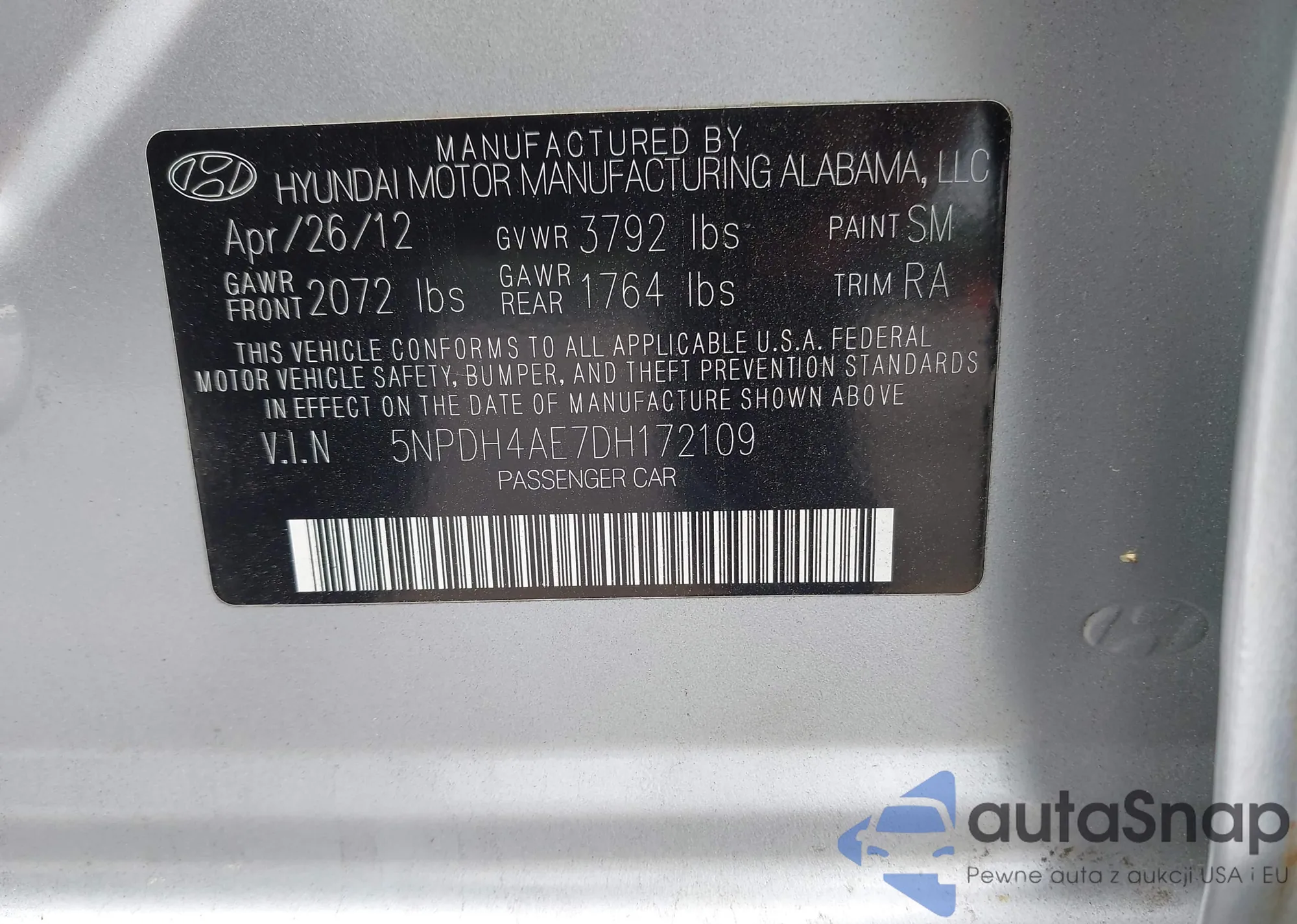 VIN: 5NPDH4AE7DH172109