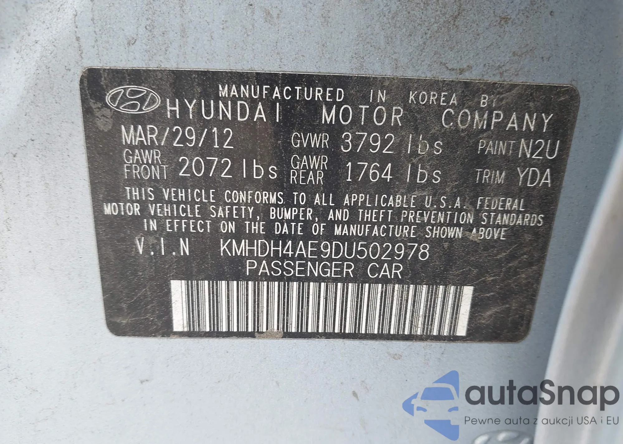 VIN: KMHDH4AE9DU502978