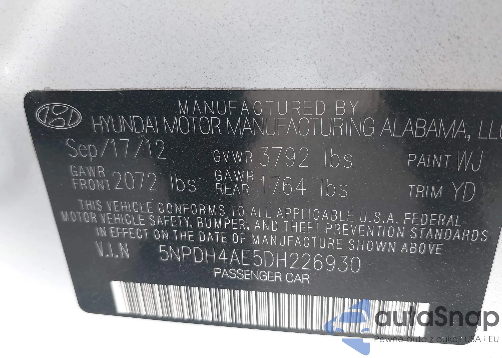 VIN: 5NPDH4AE5DH226930