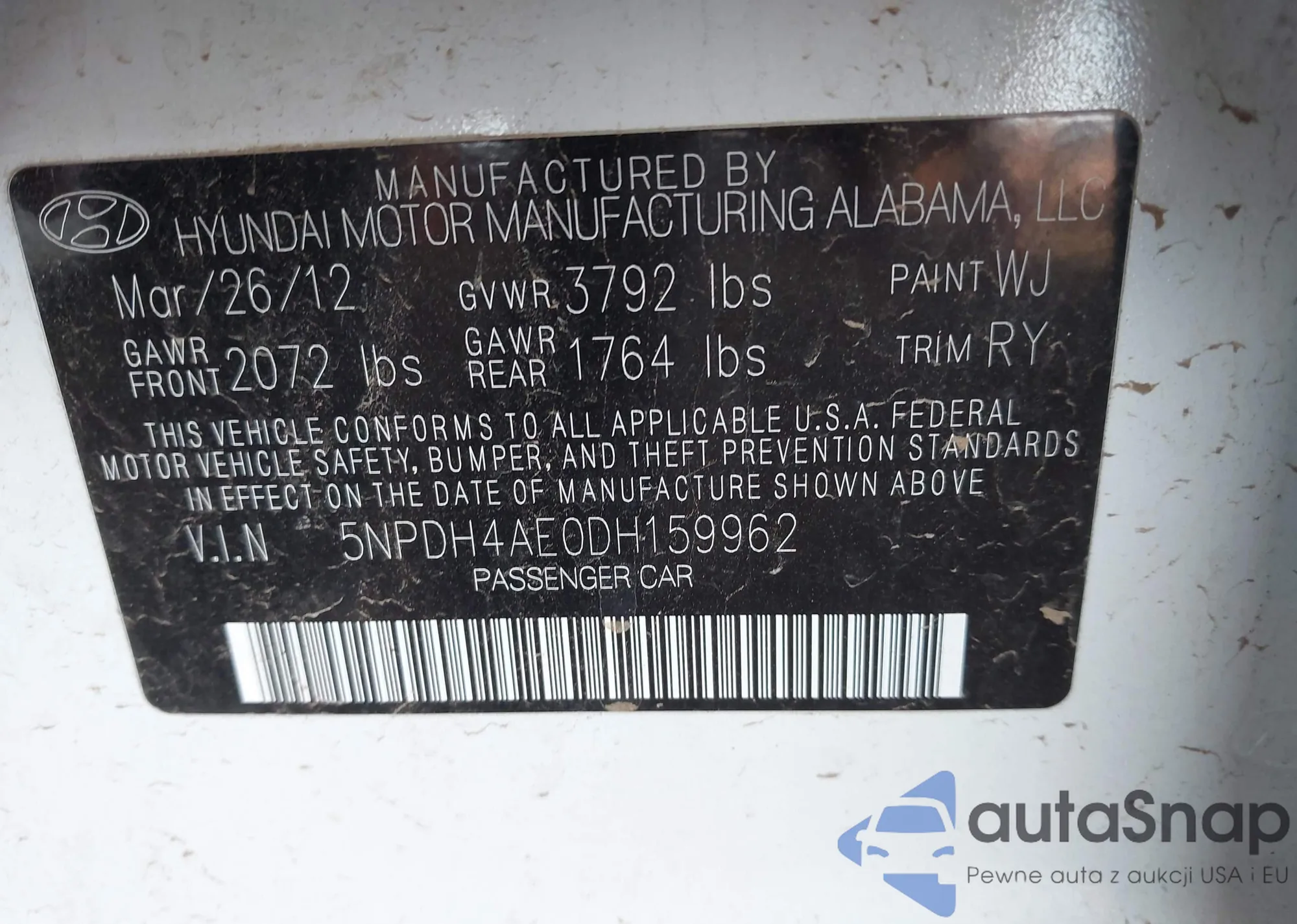 VIN: 5NPDH4AE0DH159962