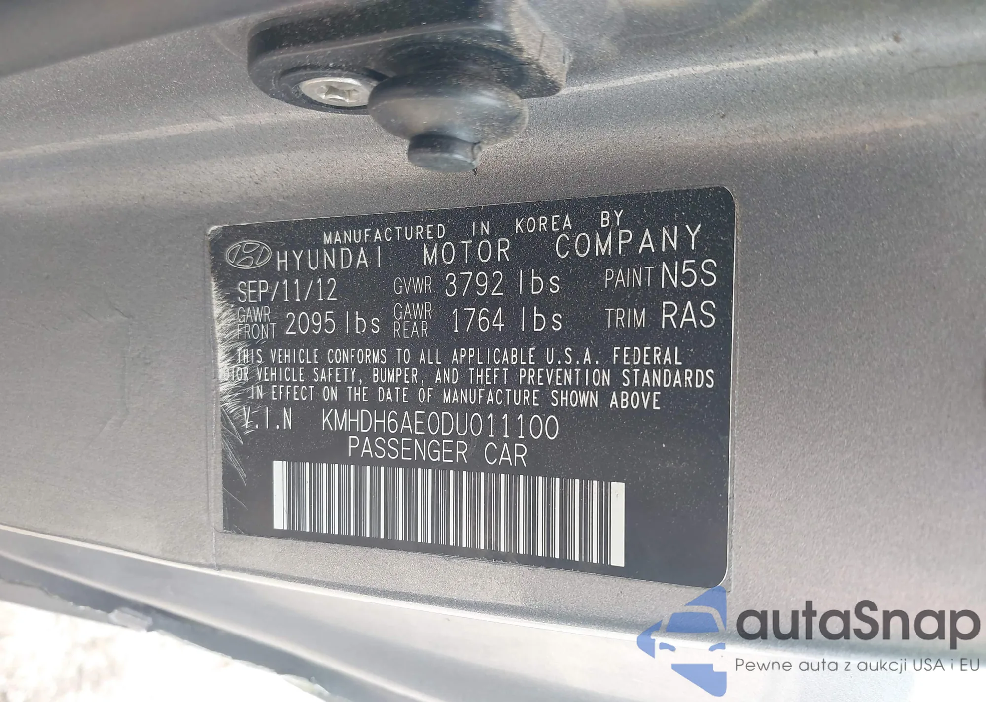 VIN: KMHDH6AE0DU011100
