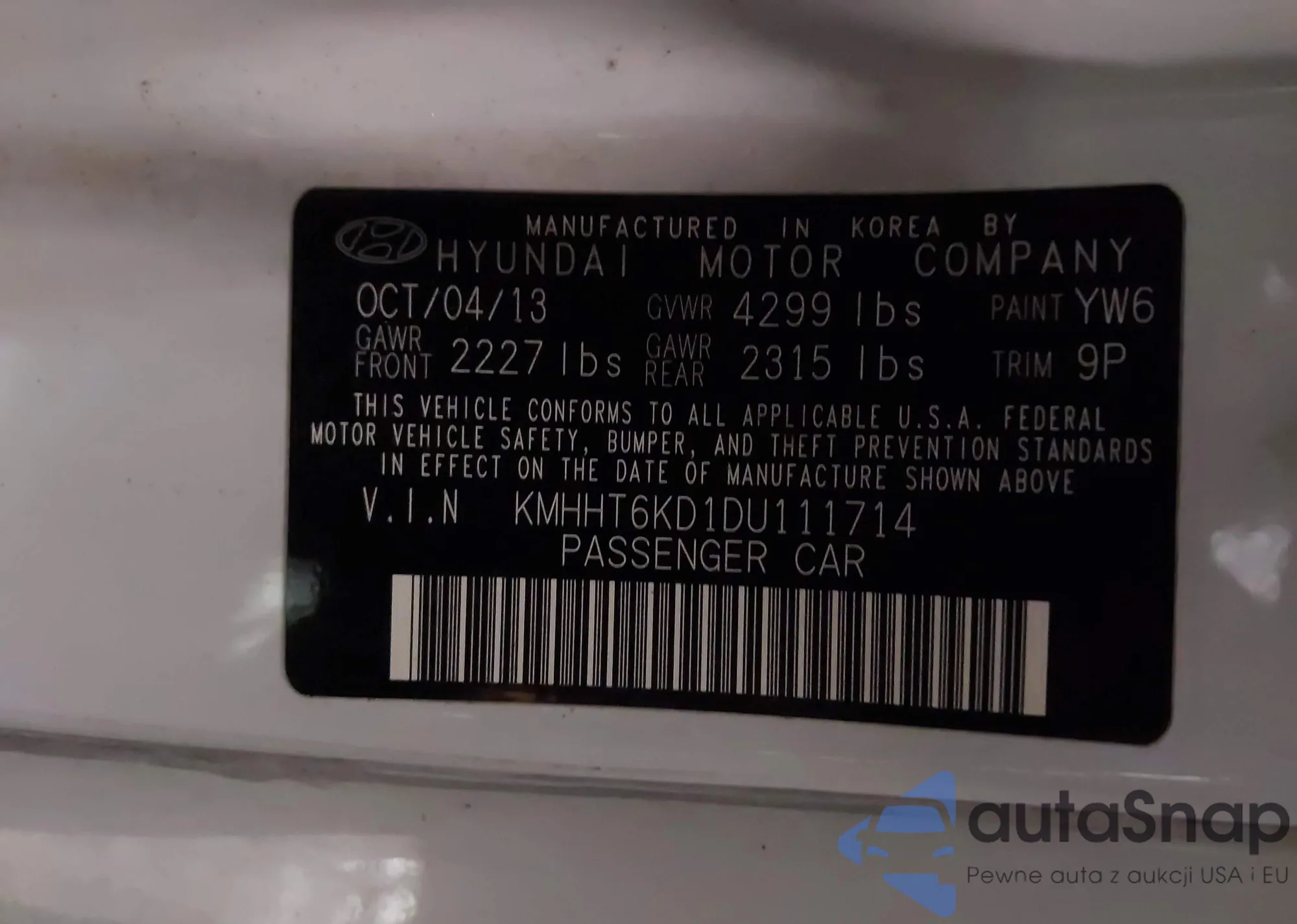 VIN: KMHHT6KD1DU111714