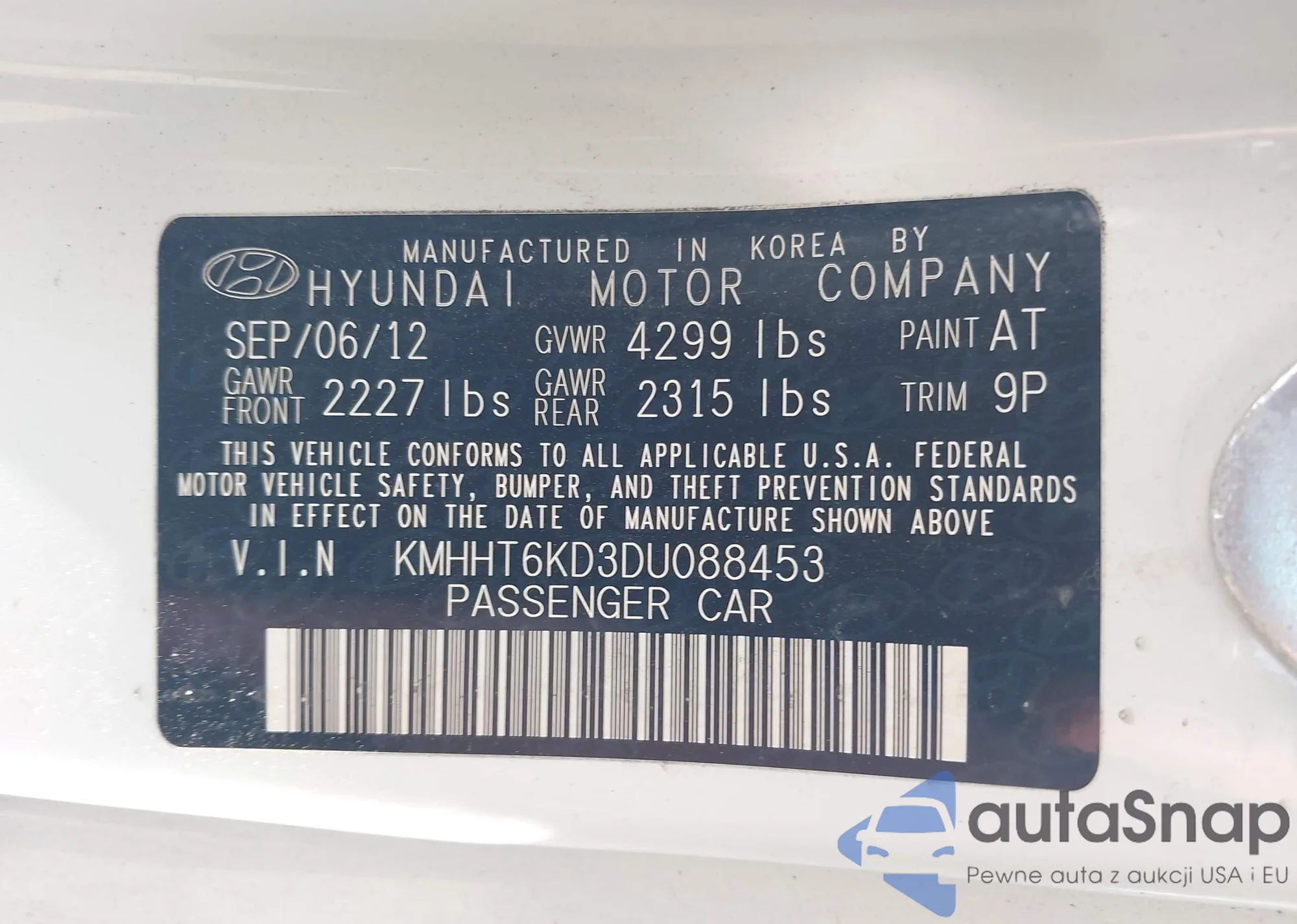 VIN: KMHHT6KD3DU088453