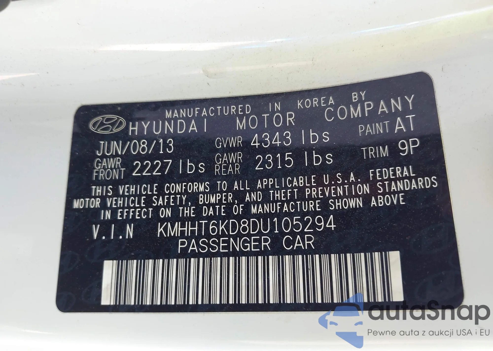 VIN: KMHHT6KD8DU105294
