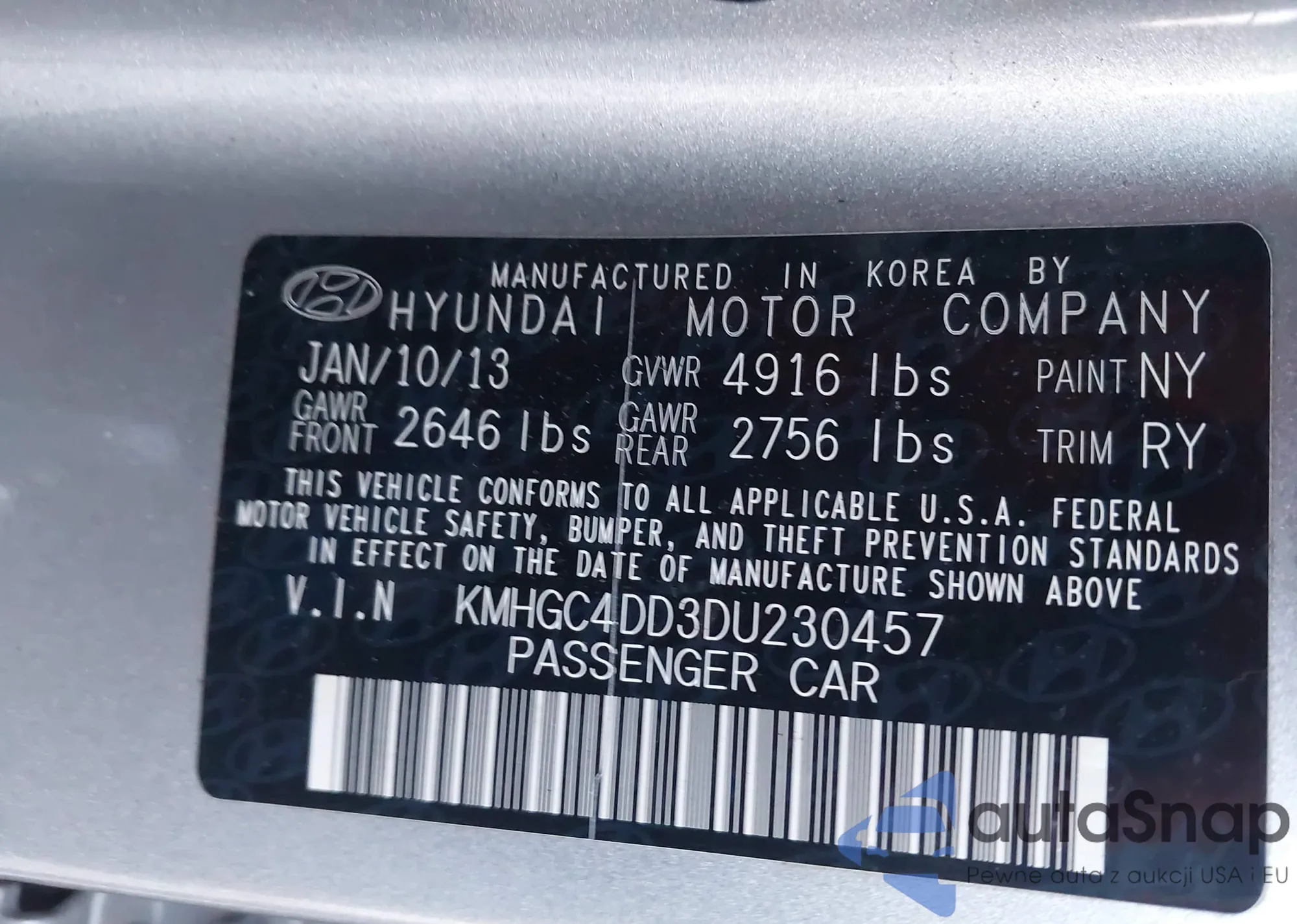 VIN: KMHGC4DD3DU230457