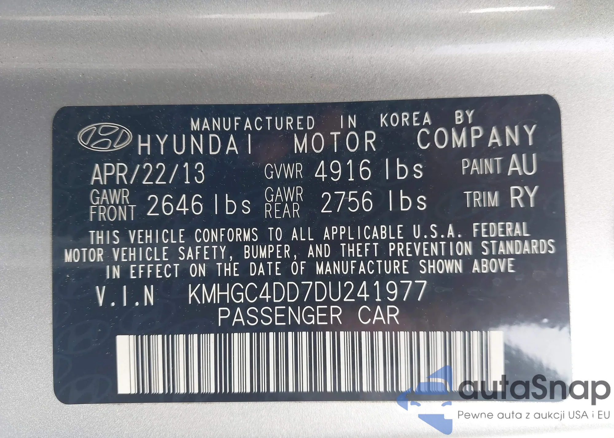 VIN: KMHGC4DD7DU241977