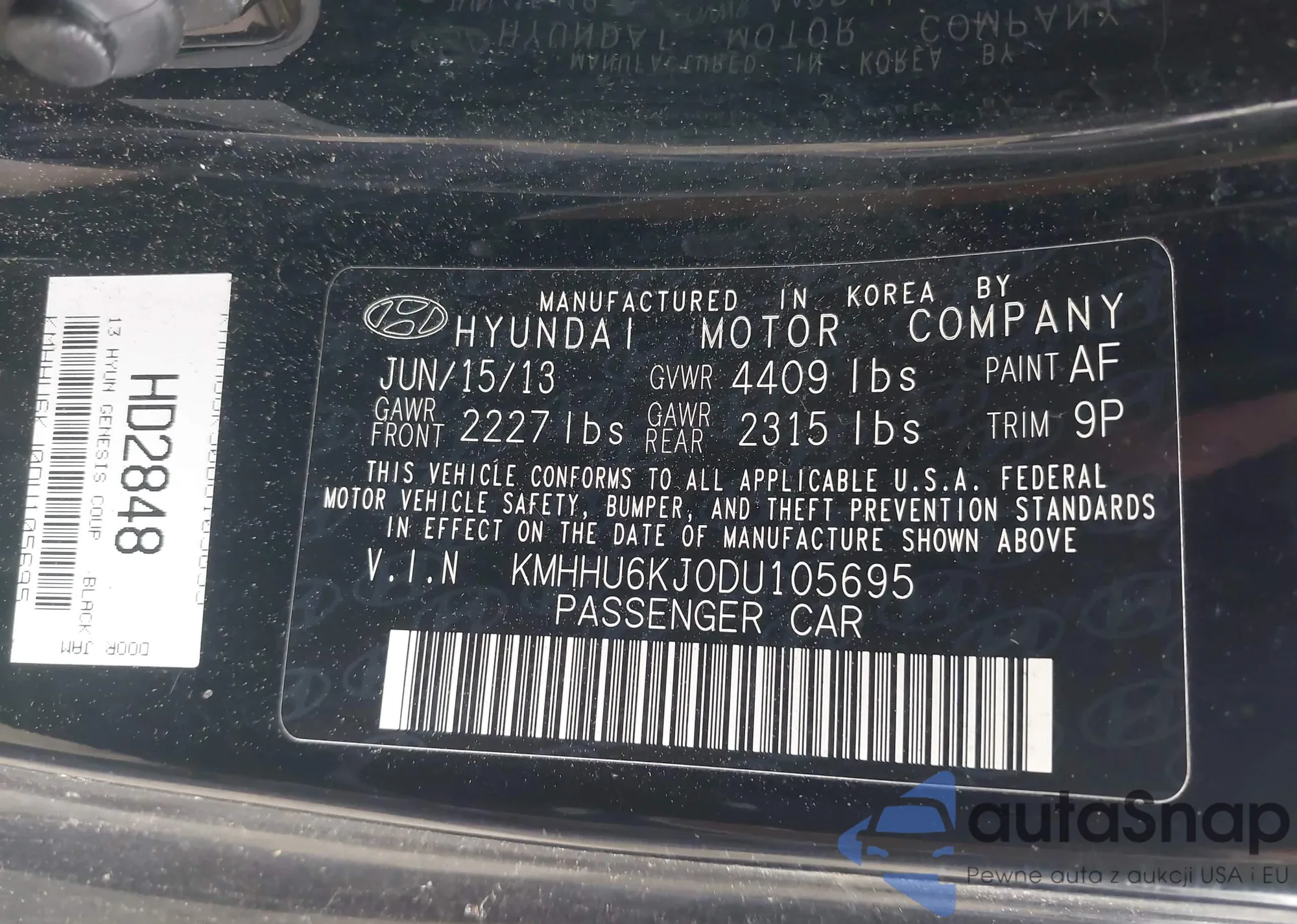 VIN: KMHHU6KJ0DU105695