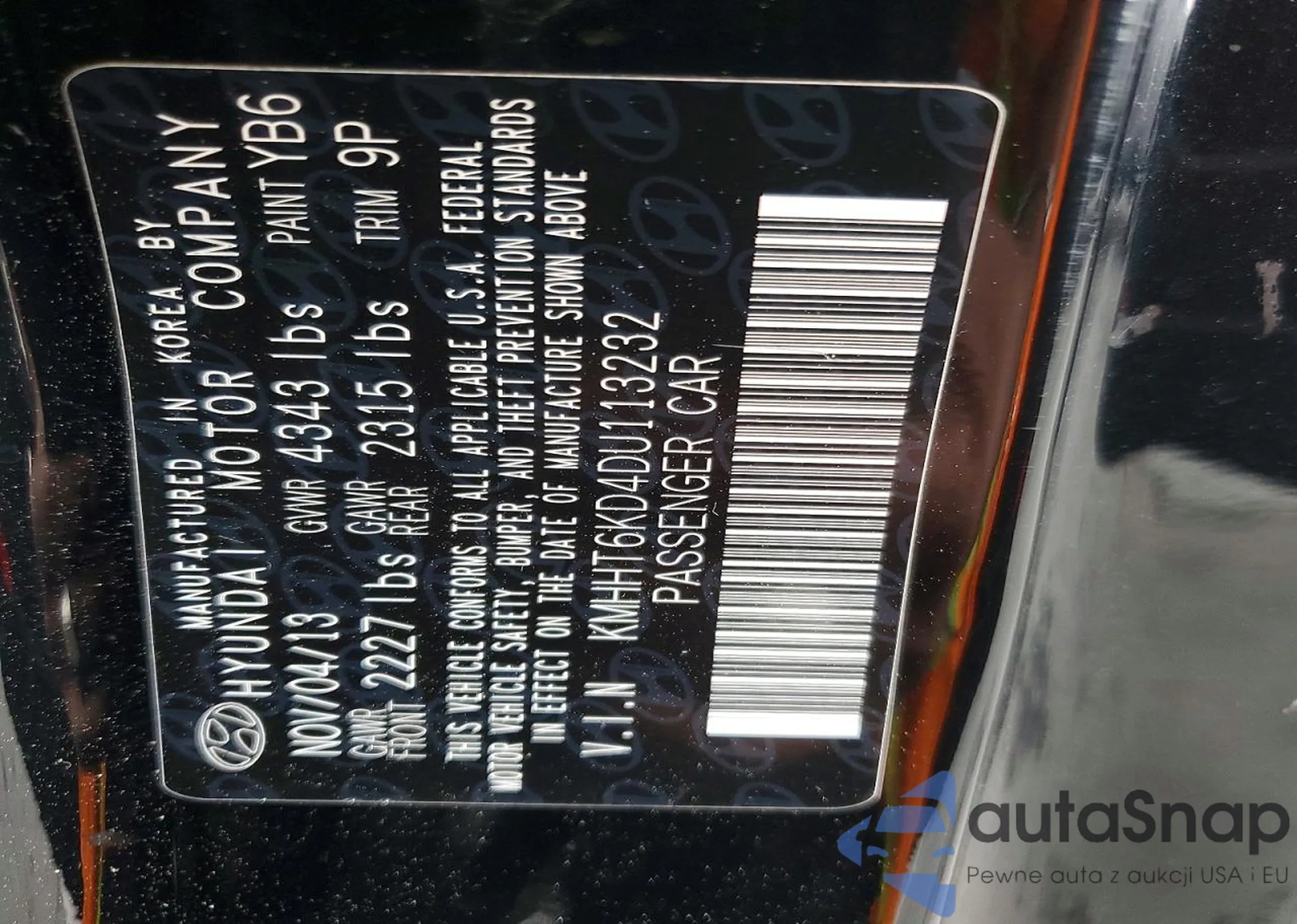 VIN: KMHHT6KD4DU113232