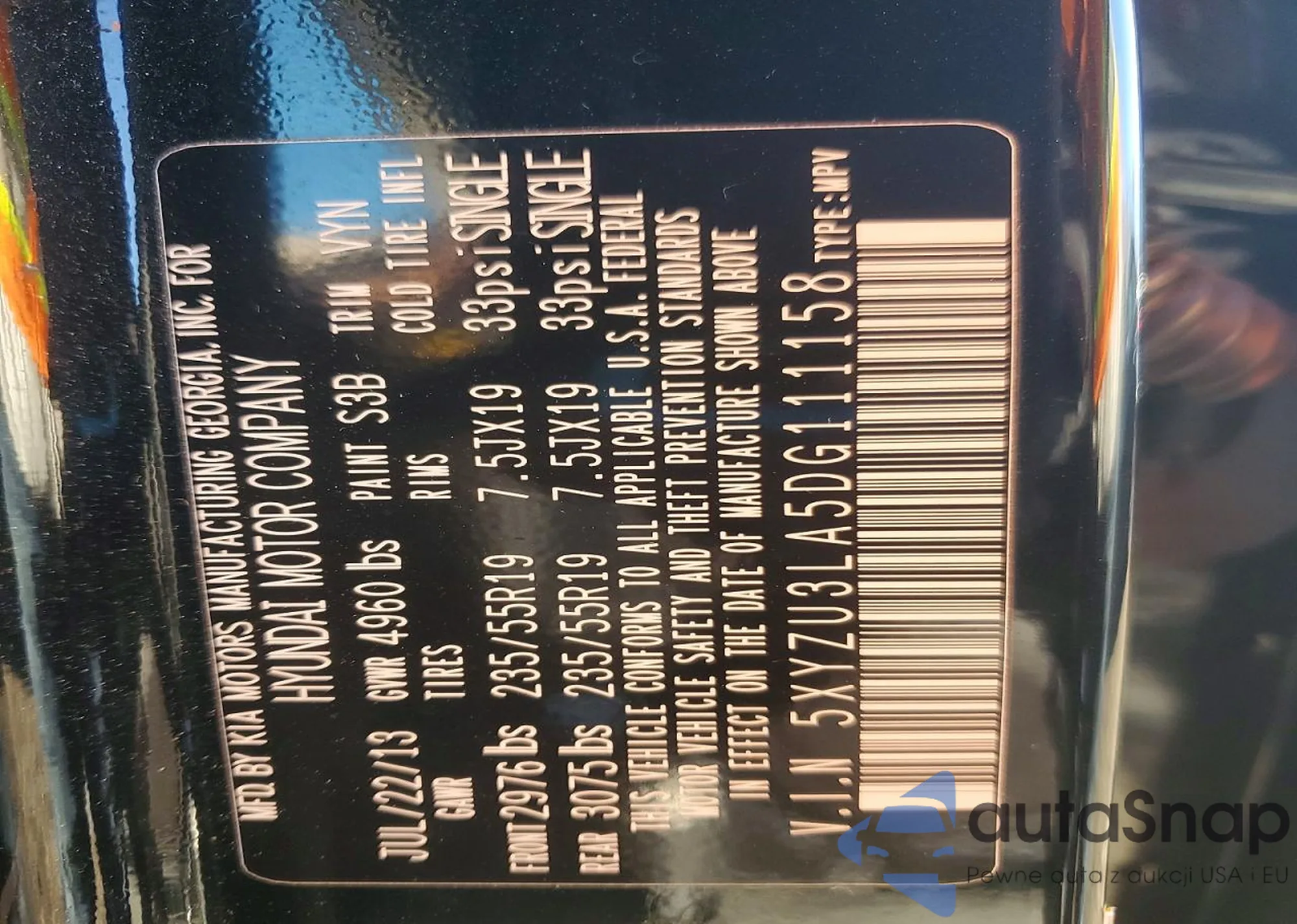 VIN: 5XYZU3LA5DG111158
