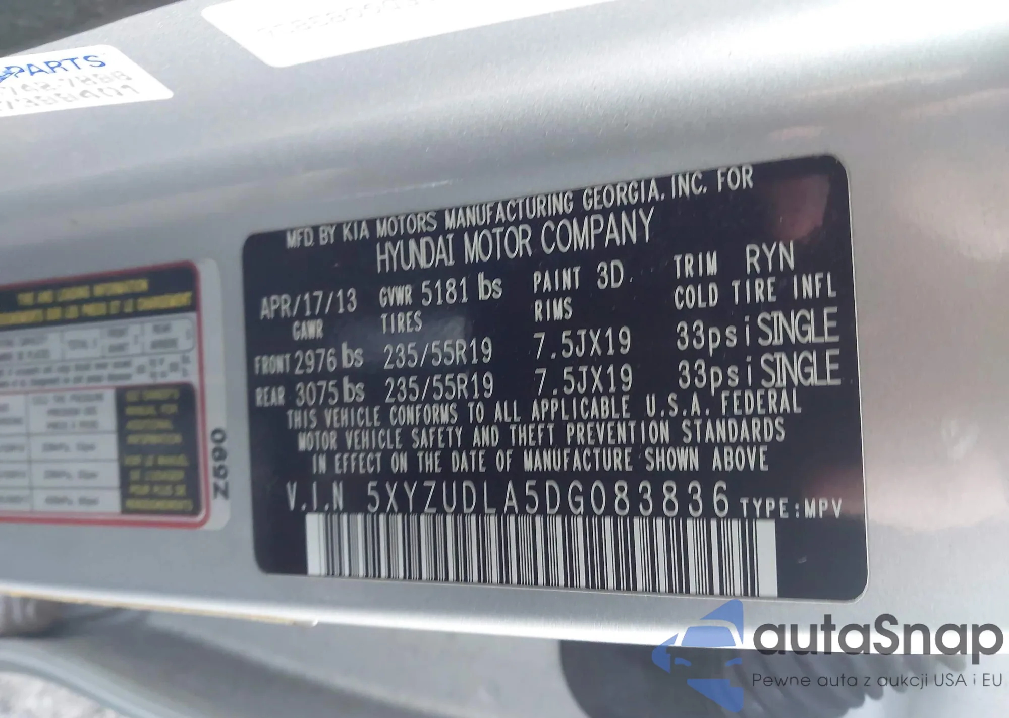 • VIN: 5XYZUDLA5DG083836