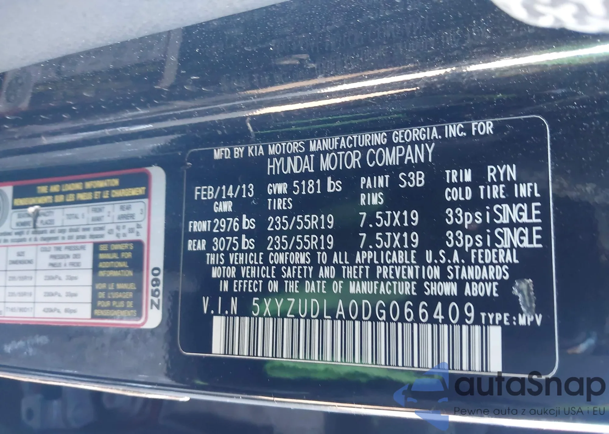 Автомобиль Hyundai Santa Fe 2013 (VIN 5XYZUDLA0DG066409) ранее не участвовал в торгах. Документы чистые, пробег соответствует или ниже среднего по рынку. Продаётся страховой компанией — рекомендуем покупку. Доставка в порт займет около 6–8 недель.