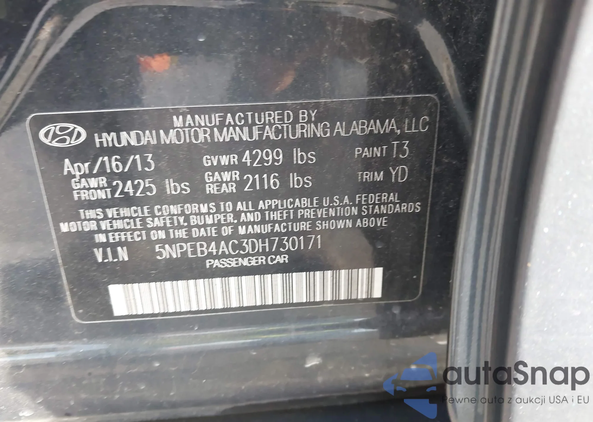 VIN: 5NPEB4AC3DH730171