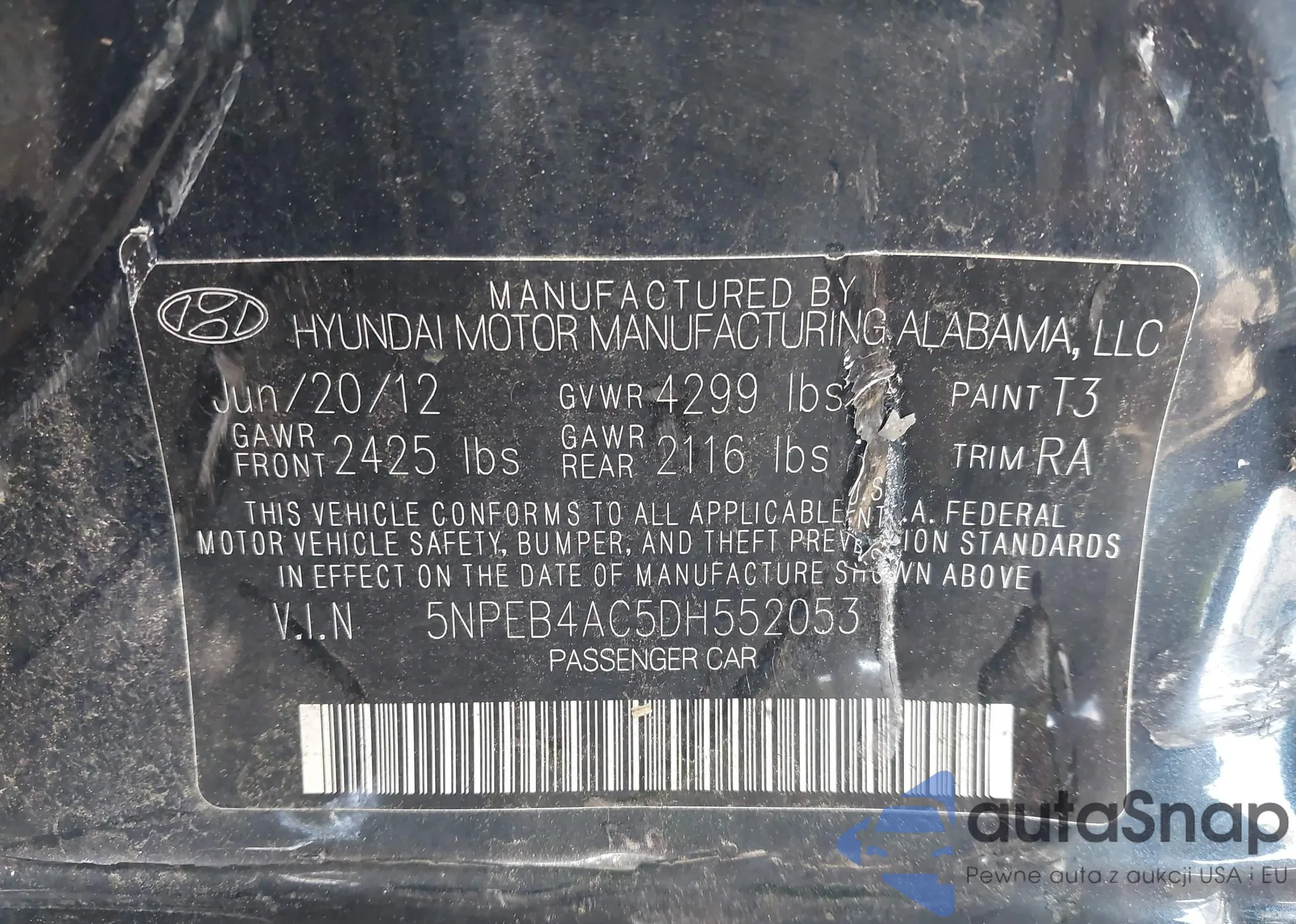 VIN: 5NPEB4AC5DH552053