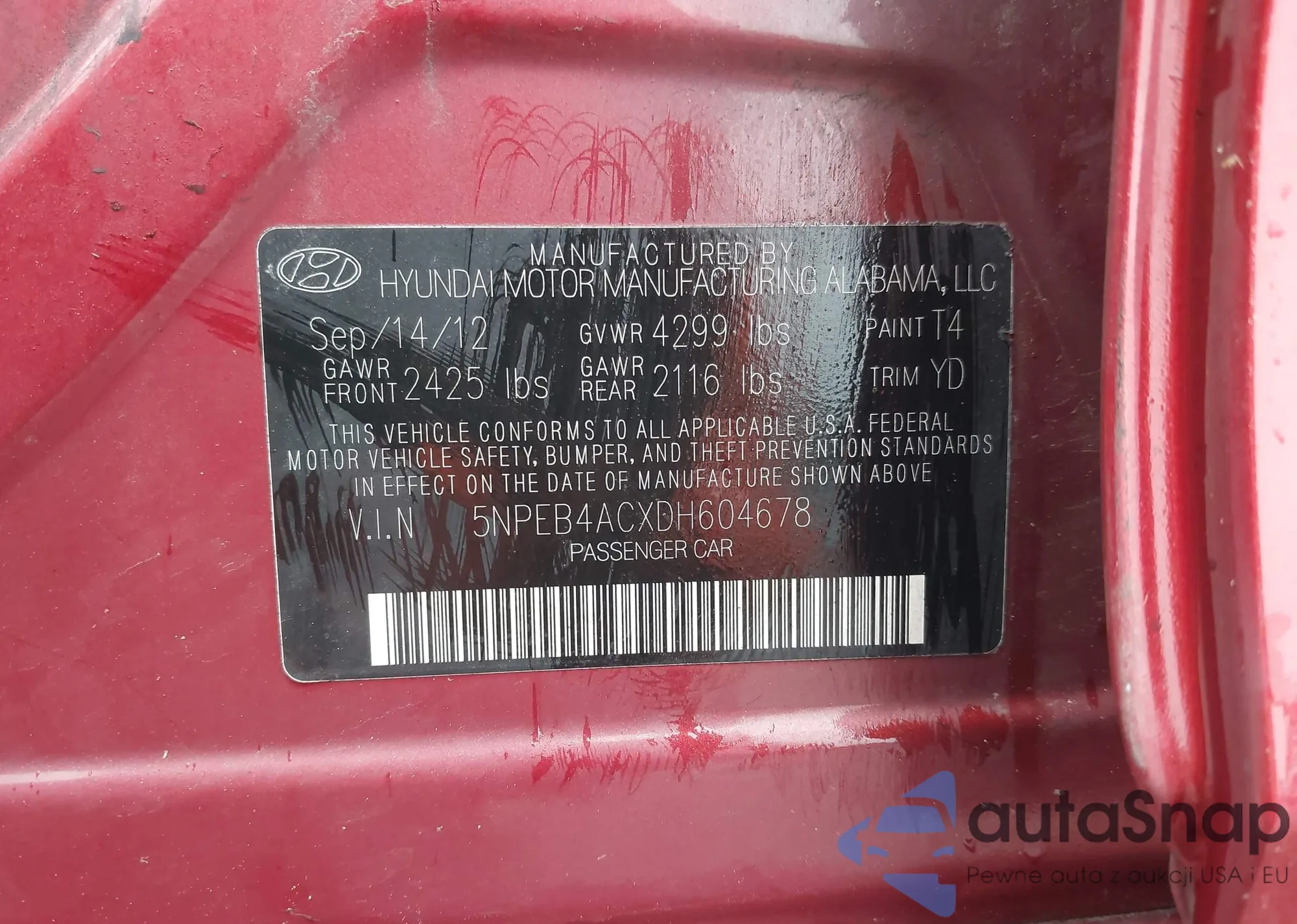 VIN: 5NPEB4ACXDH604678