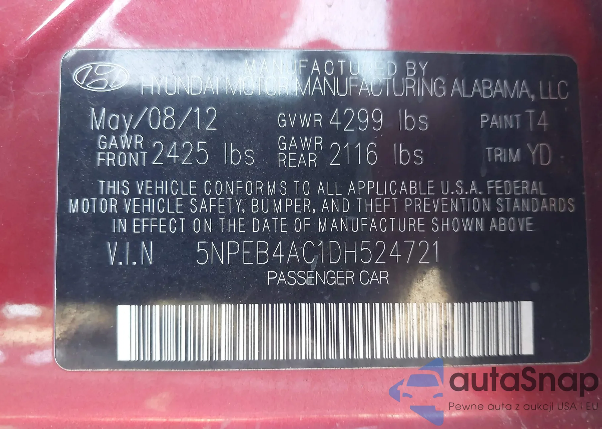 VIN: 5NPEB4AC1DH524721