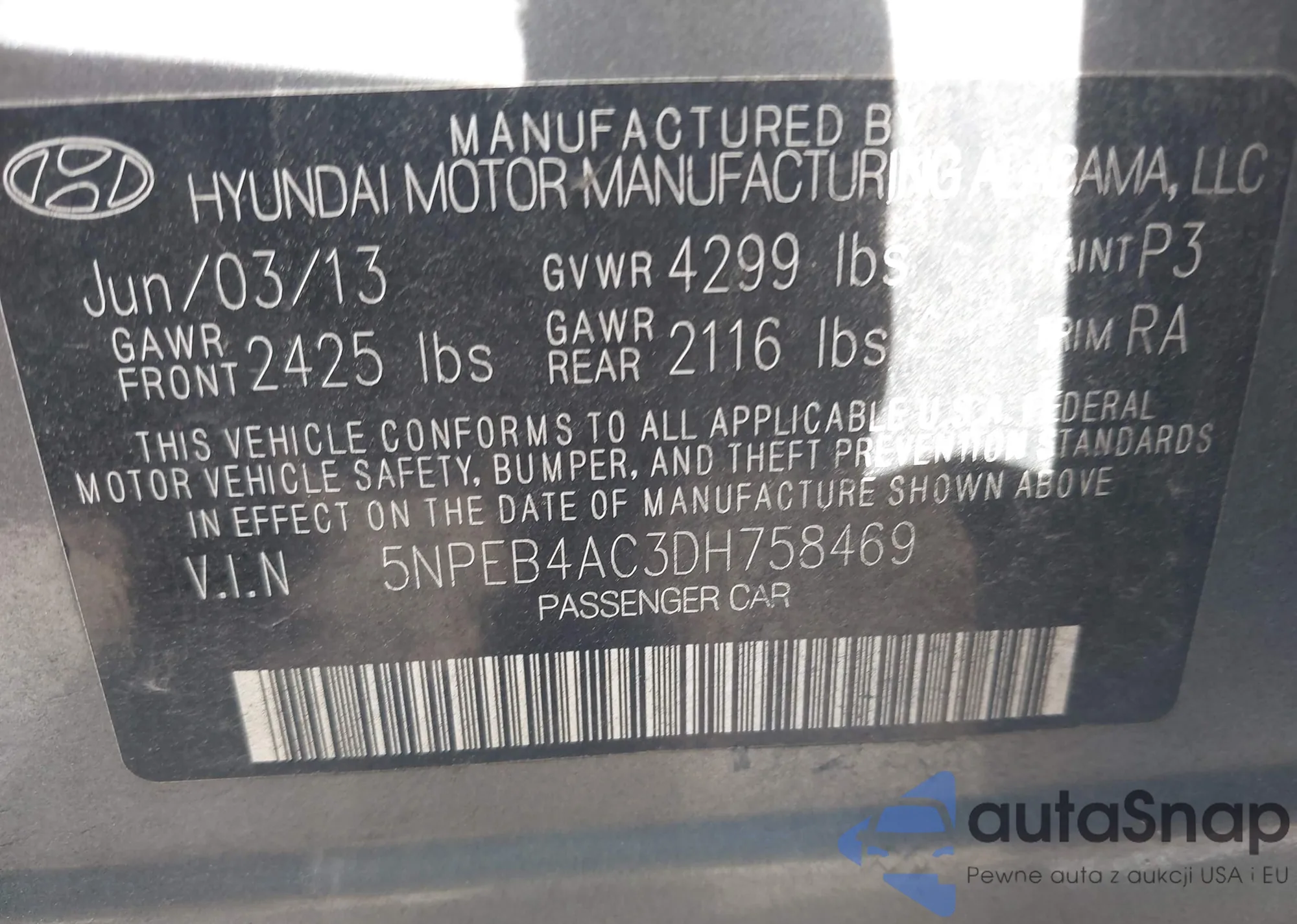 VIN: 5NPEB4AC3DH758469