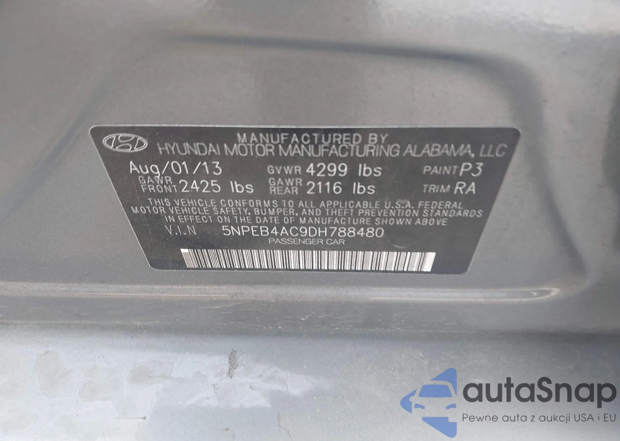 • VIN: 5NPEB4AC9DH788480