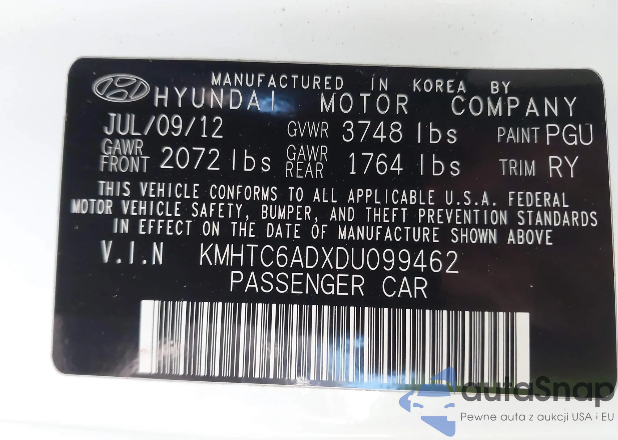 VIN: KMHTC6ADXDU099462
