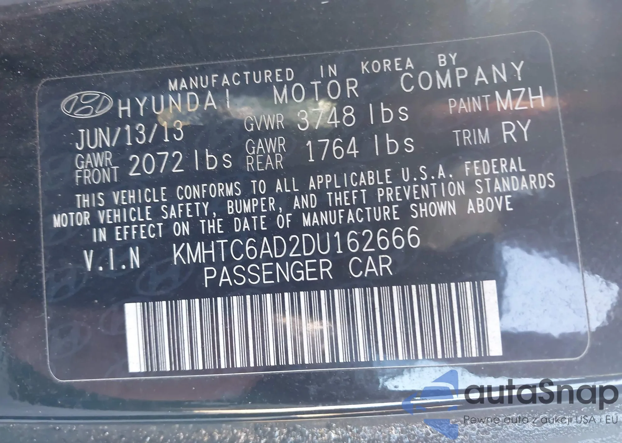 VIN: KMHTC6AD2DU162666