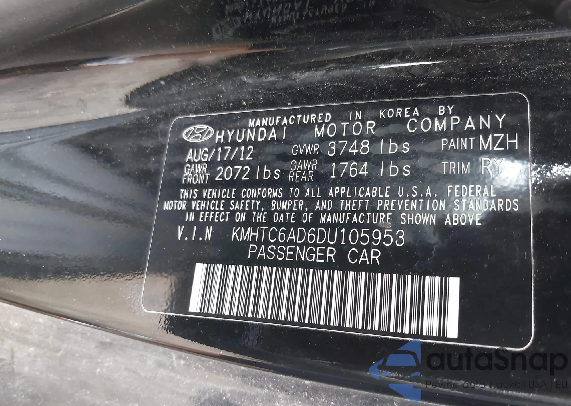 VIN: KMHTC6AD6DU105953