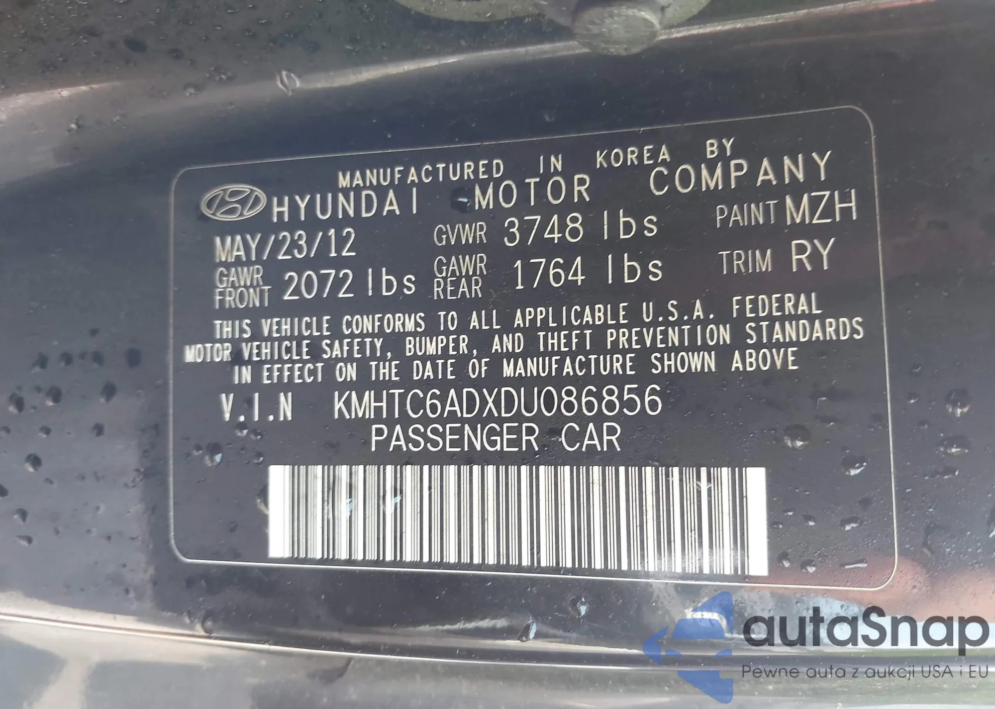 VIN: KMHTC6ADXDU086856