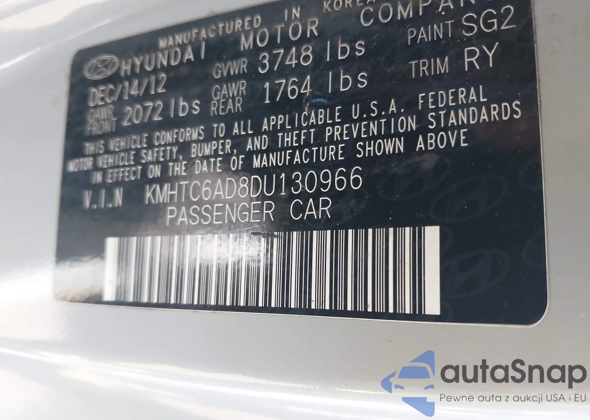 VIN: KMHTC6AD8DU130966