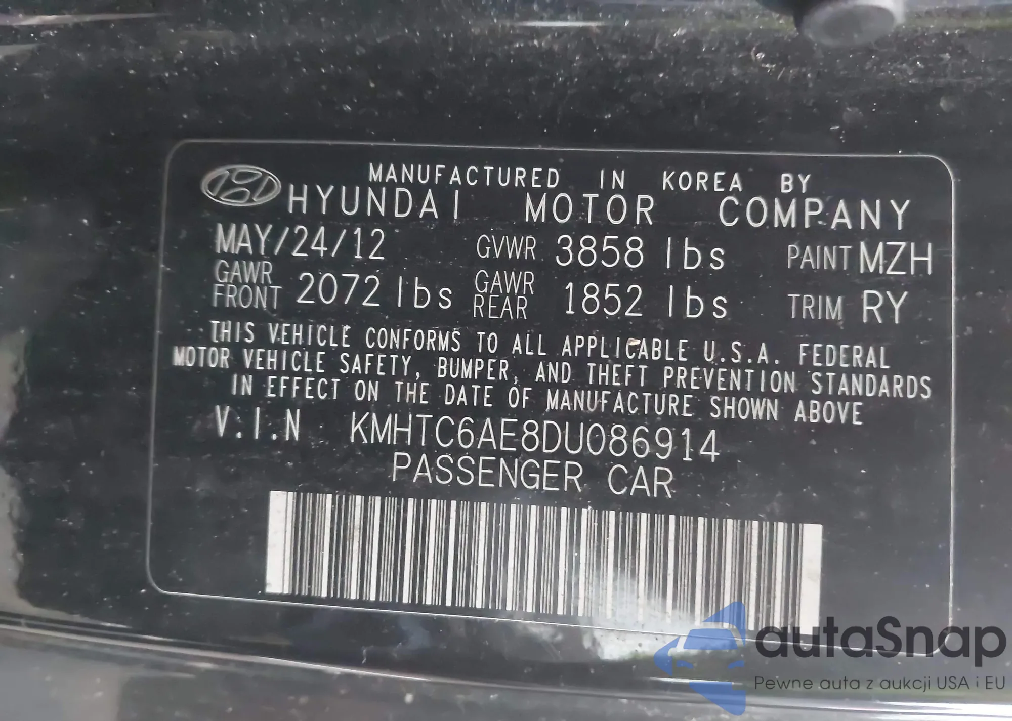 • VIN: KMHTC6AE8DU086914