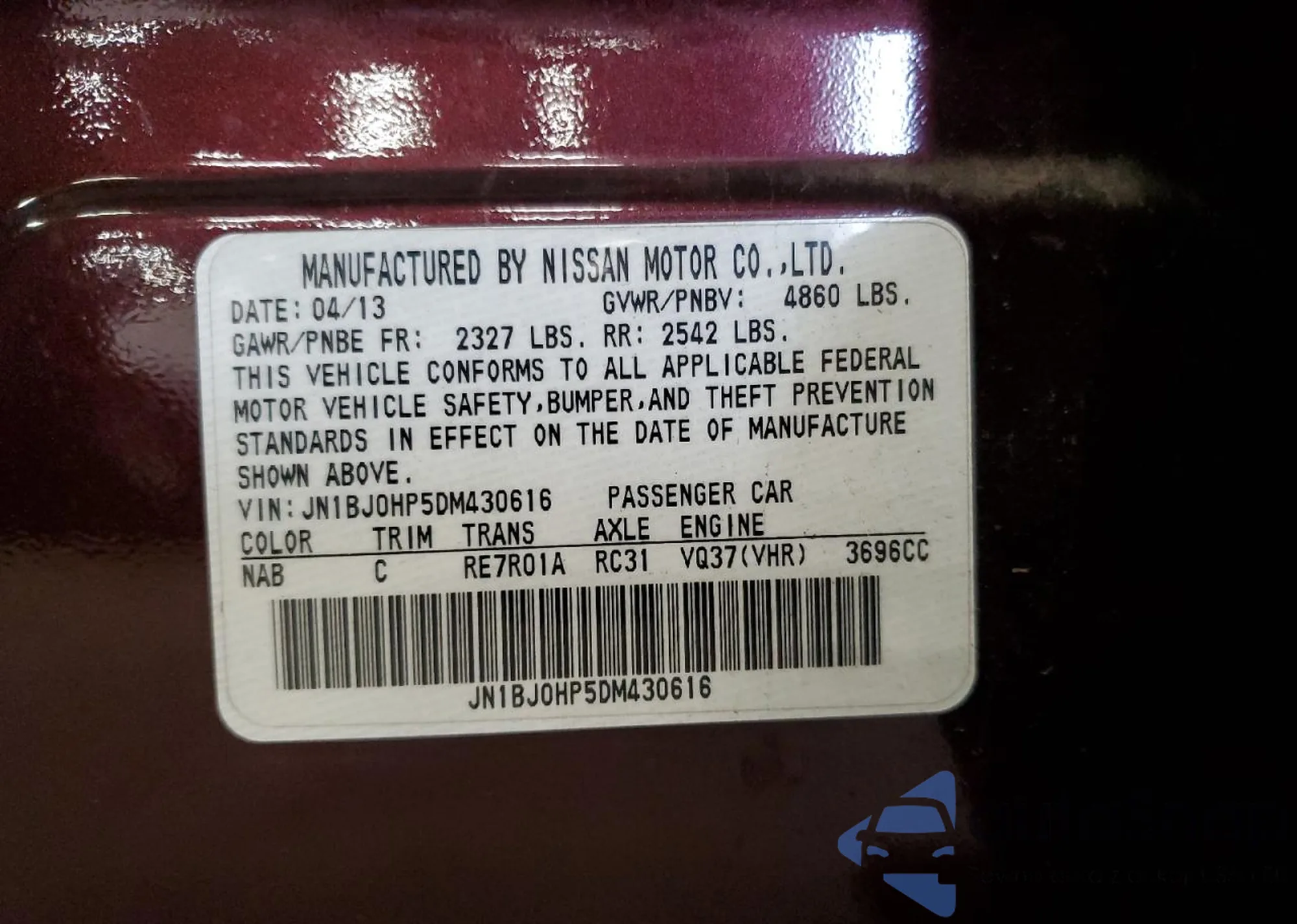 VIN: JN1BJ0HP5DM430616