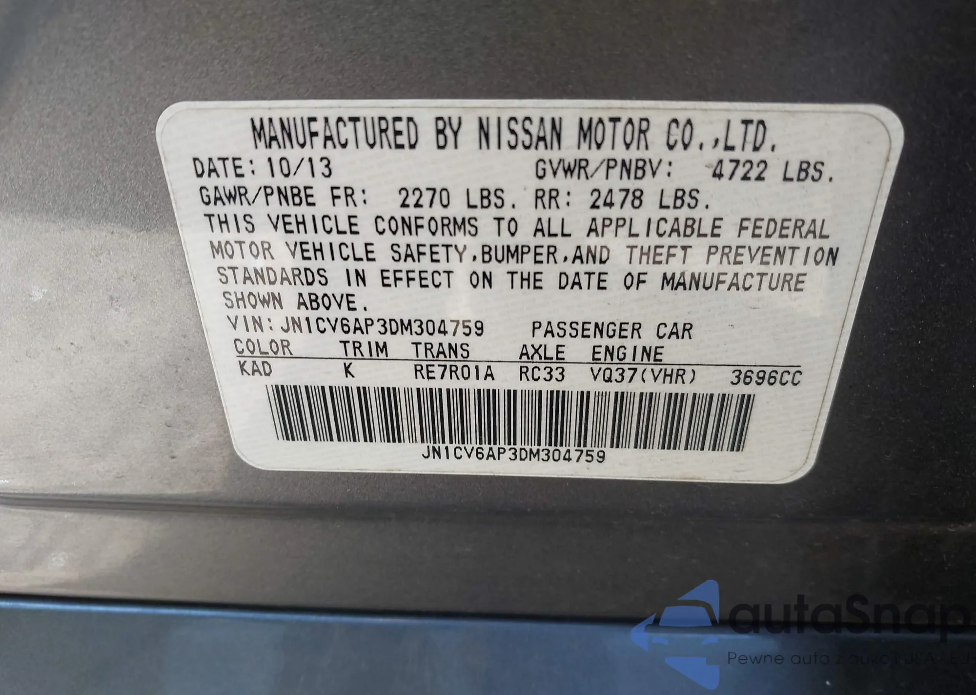 VIN: JN1CV6AP3DM304759