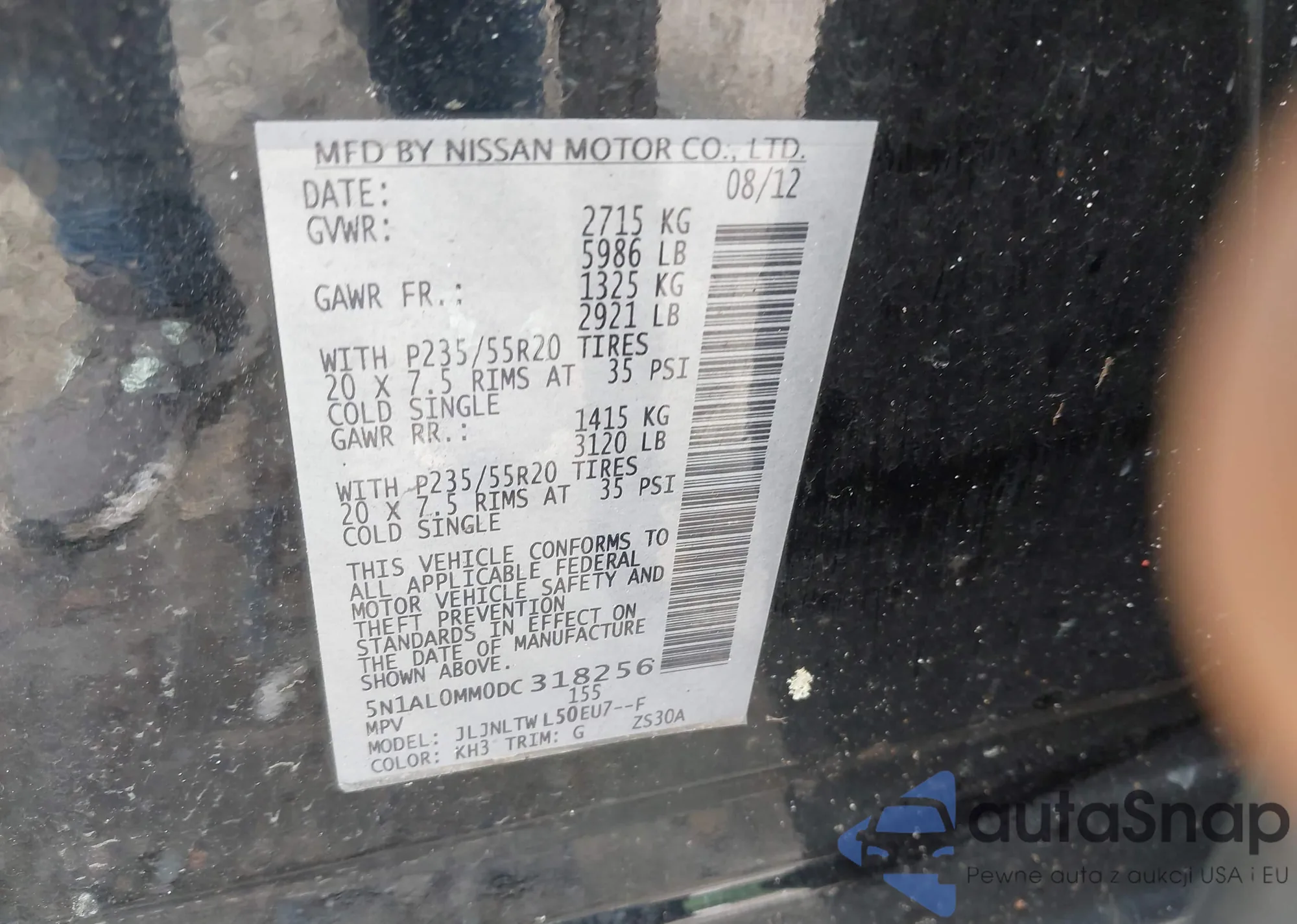VIN: 5N1AL0MM0DC318256