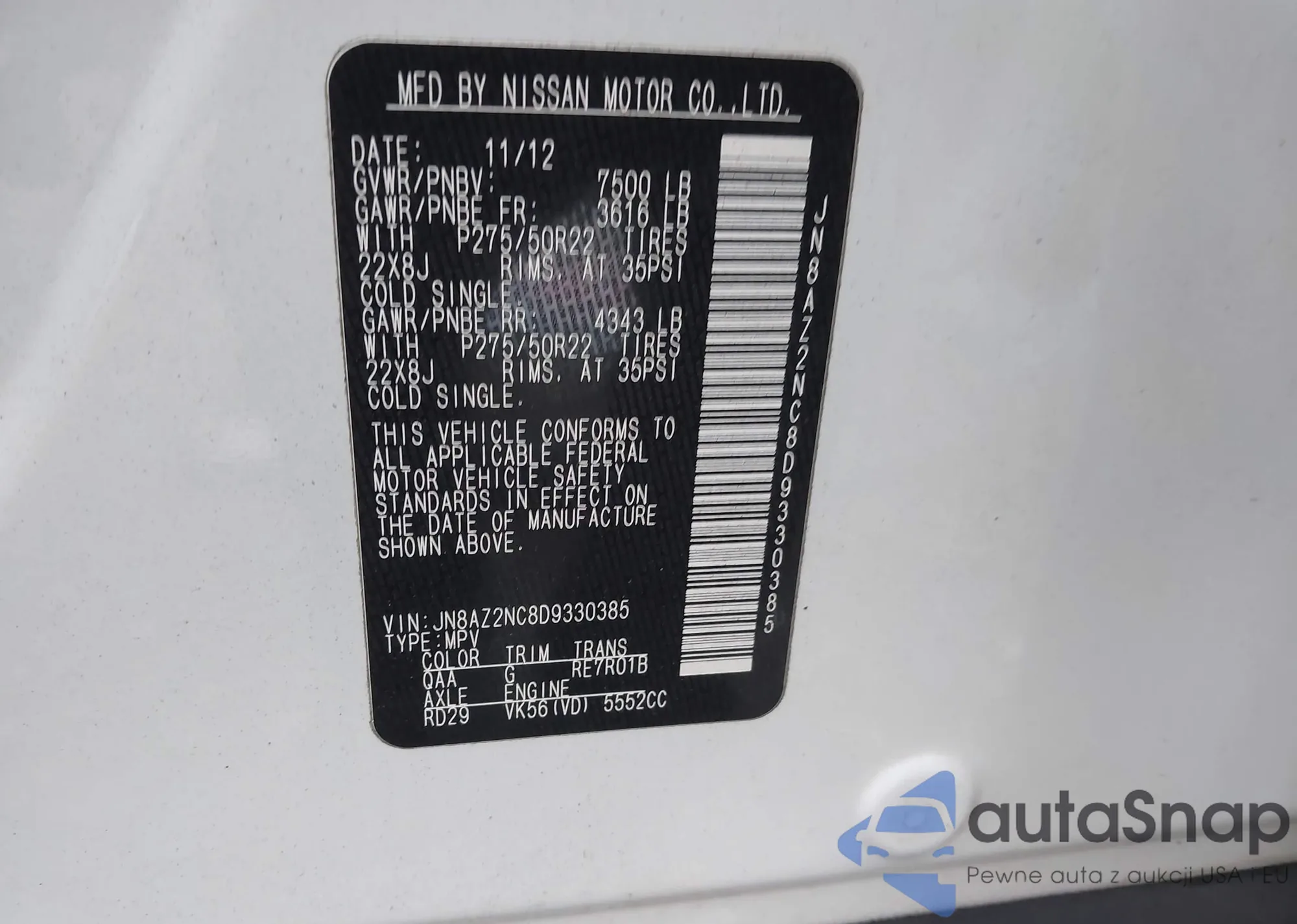 VIN: JN8AZ2NC8D9330385