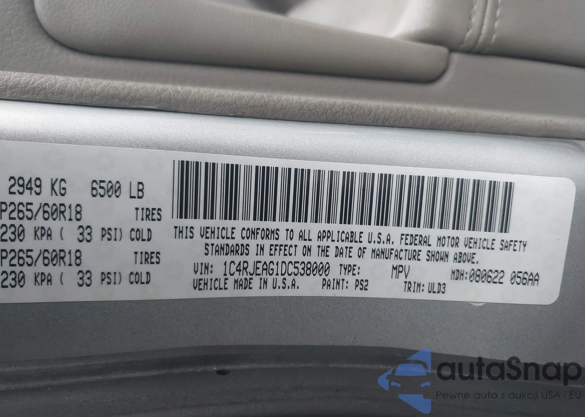 Автомобиль Jeep Grand Cherokee 2013 (VIN 1C4RJEAG1DC538000) продаётся непроверенным продавцом. Рекомендуем проверить отчет Carfax и подтвердить возможность регистрации перед покупкой.