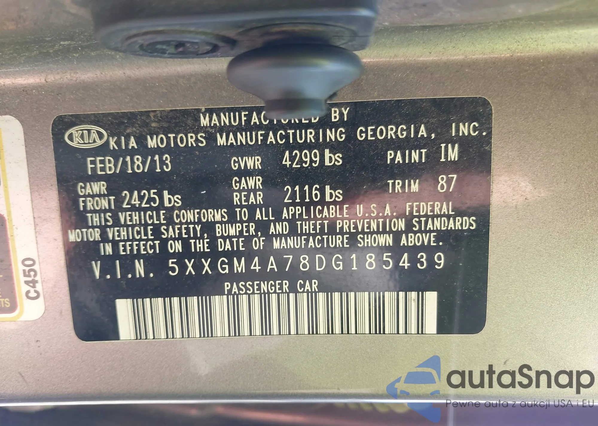 Автомобиль Kia Optima 2013 (VIN 5XXGM4A78DG185439) ранее не участвовал в торгах. Документы чистые, пробег соответствует или ниже среднего по рынку. Продаётся страховой компанией — рекомендуем покупку. Доставка в порт займет около 6–8 недель.