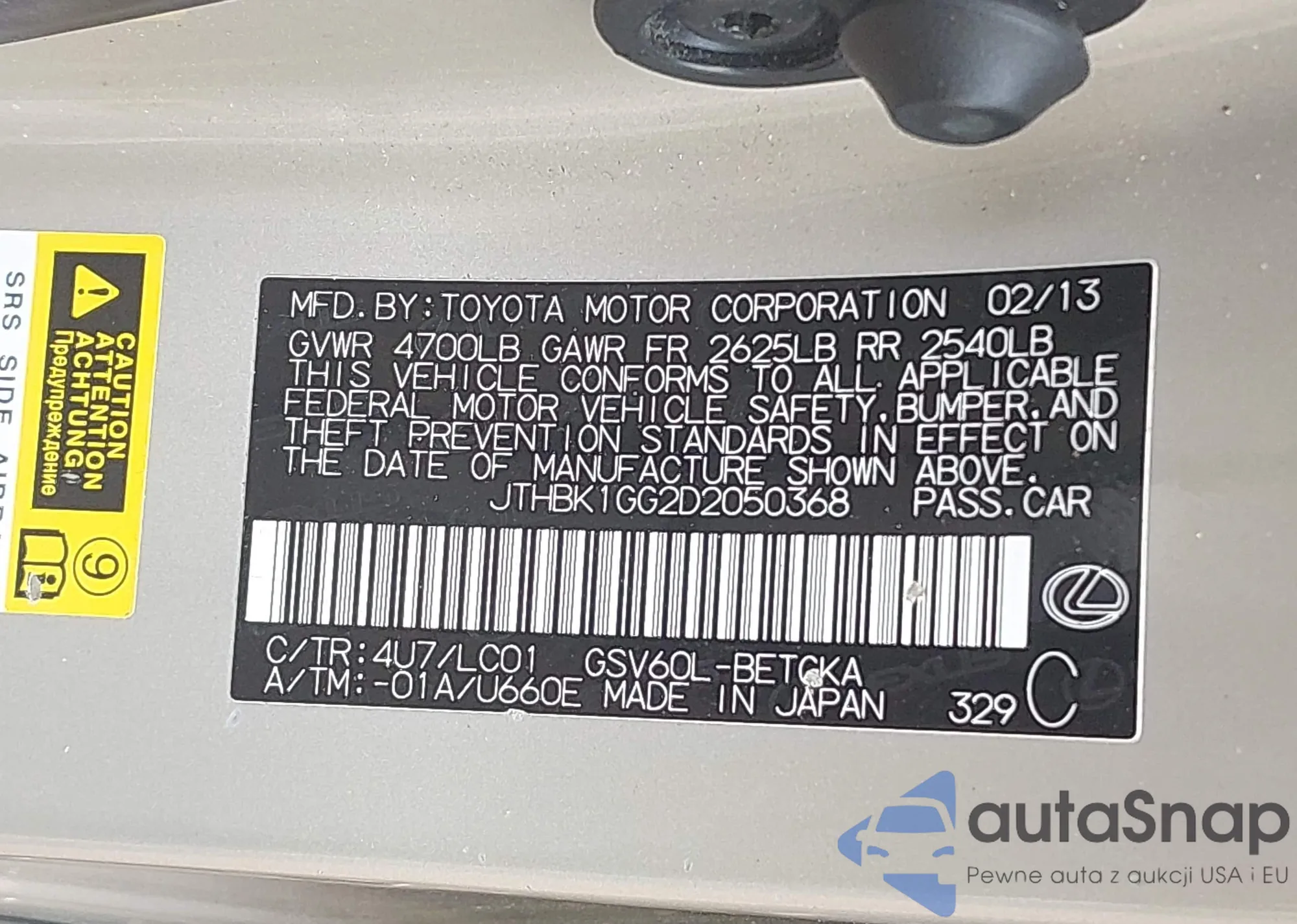 VIN: JTHBK1GG2D2050368