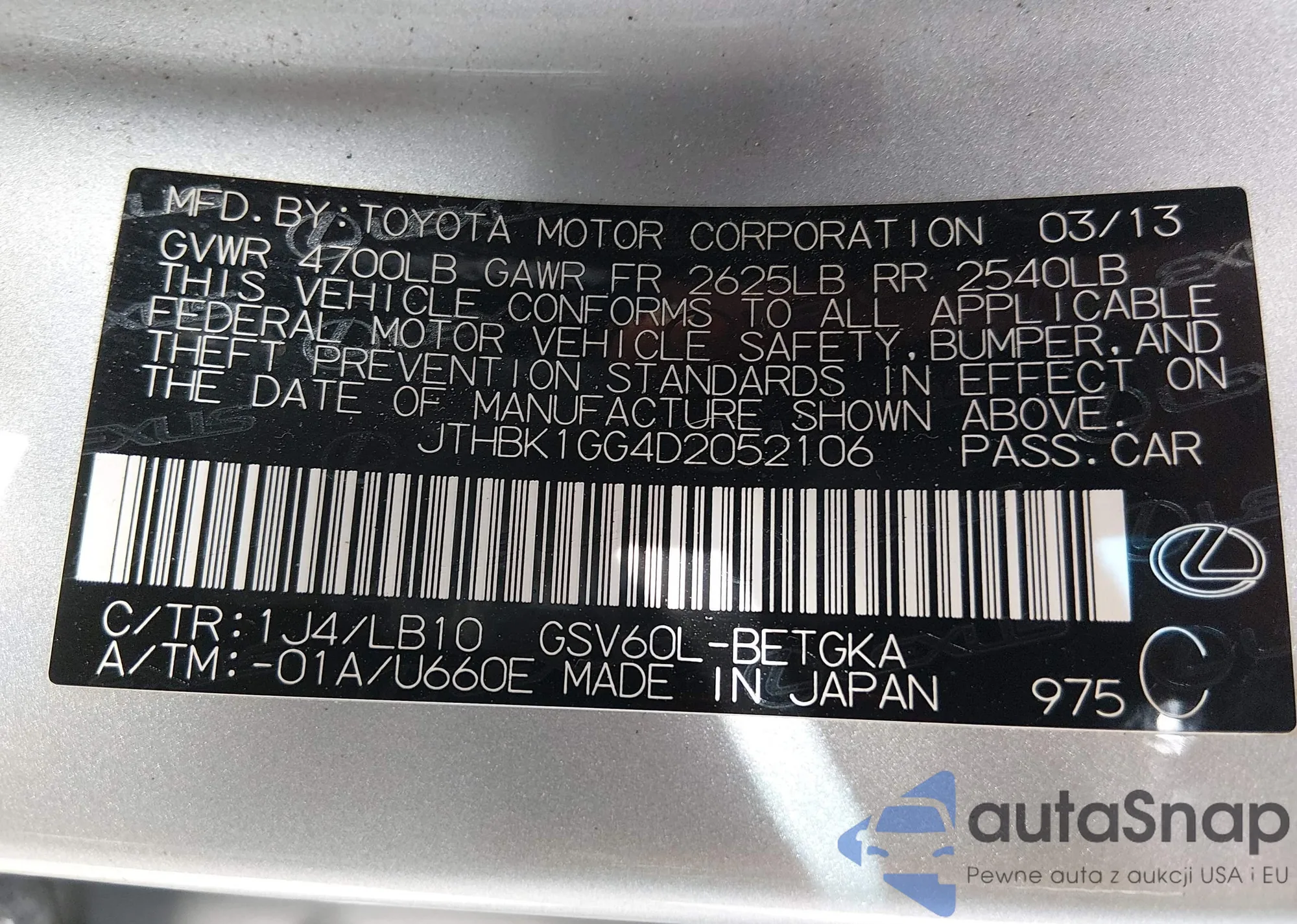 JTHBK1GG4D2052106 IAAI
