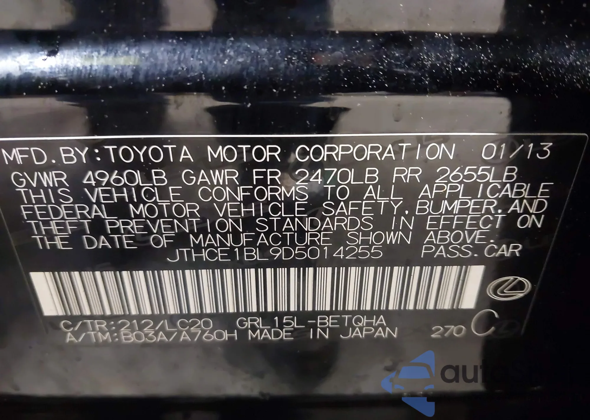VIN: JTHCE1BL9D5014255