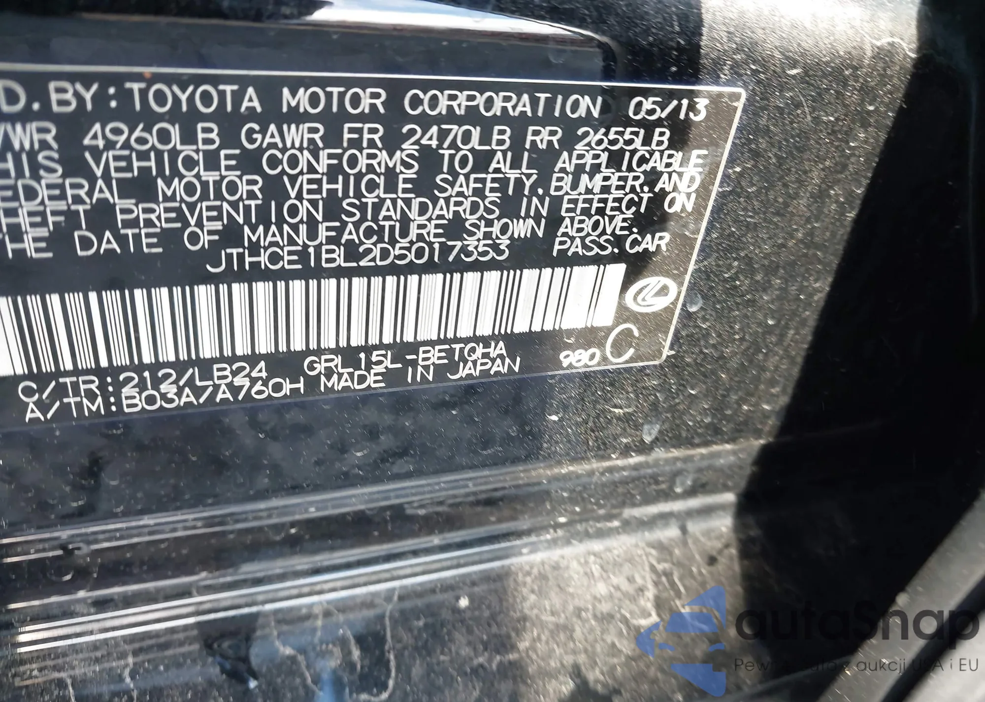 VIN: JTHCE1BL2D5017353