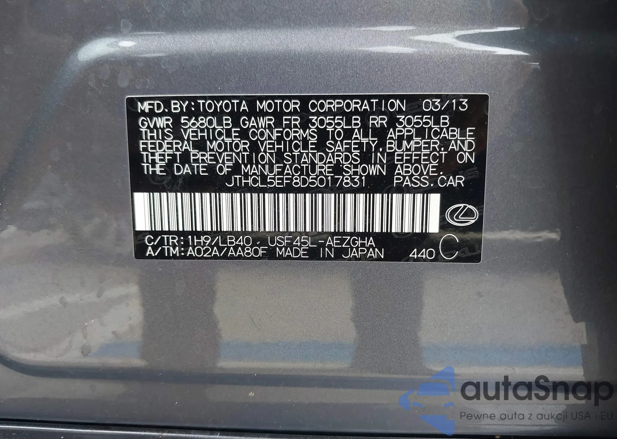 VIN: JTHCL5EF8D5017831