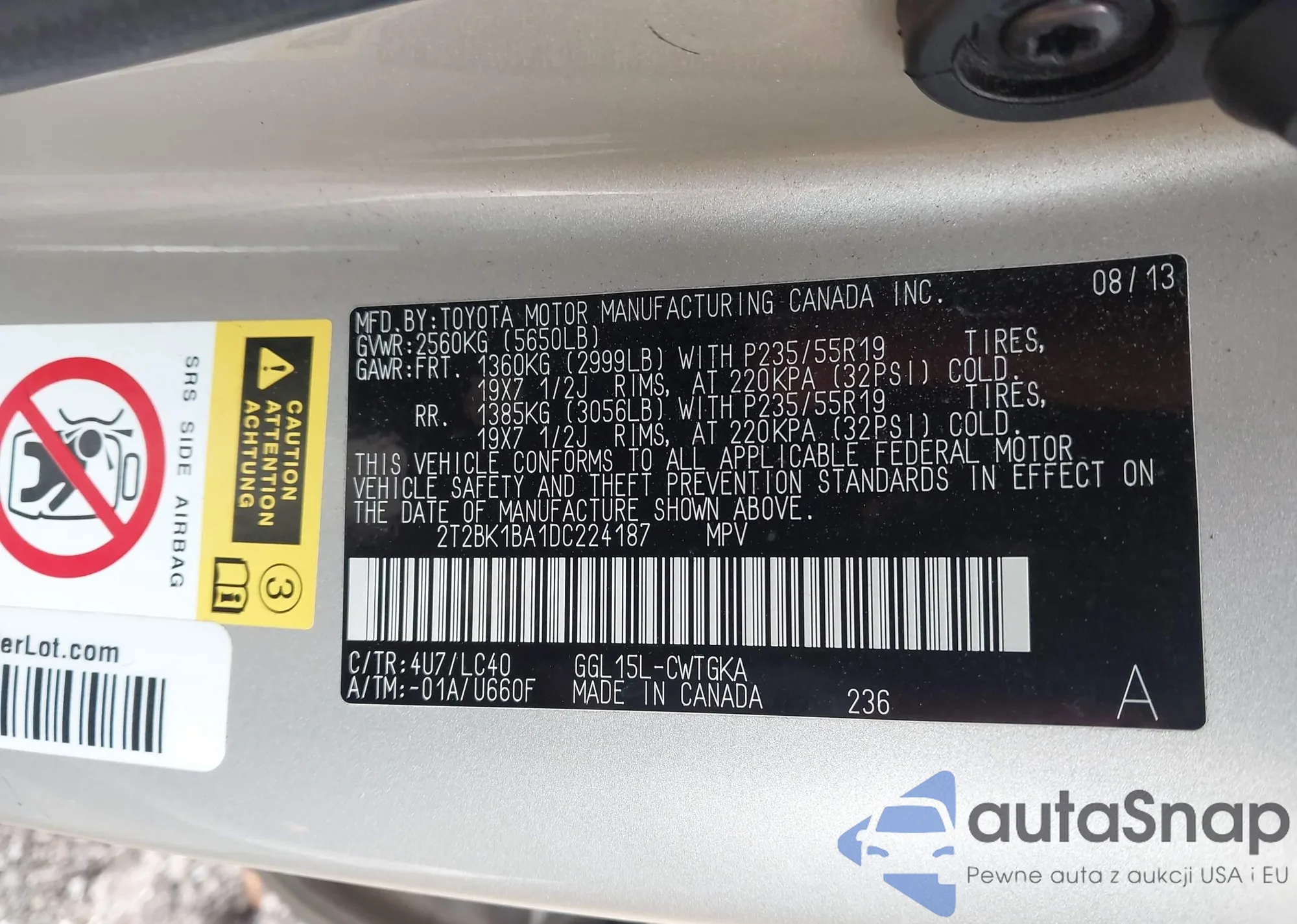 VIN: 2T2BK1BA1DC224187
