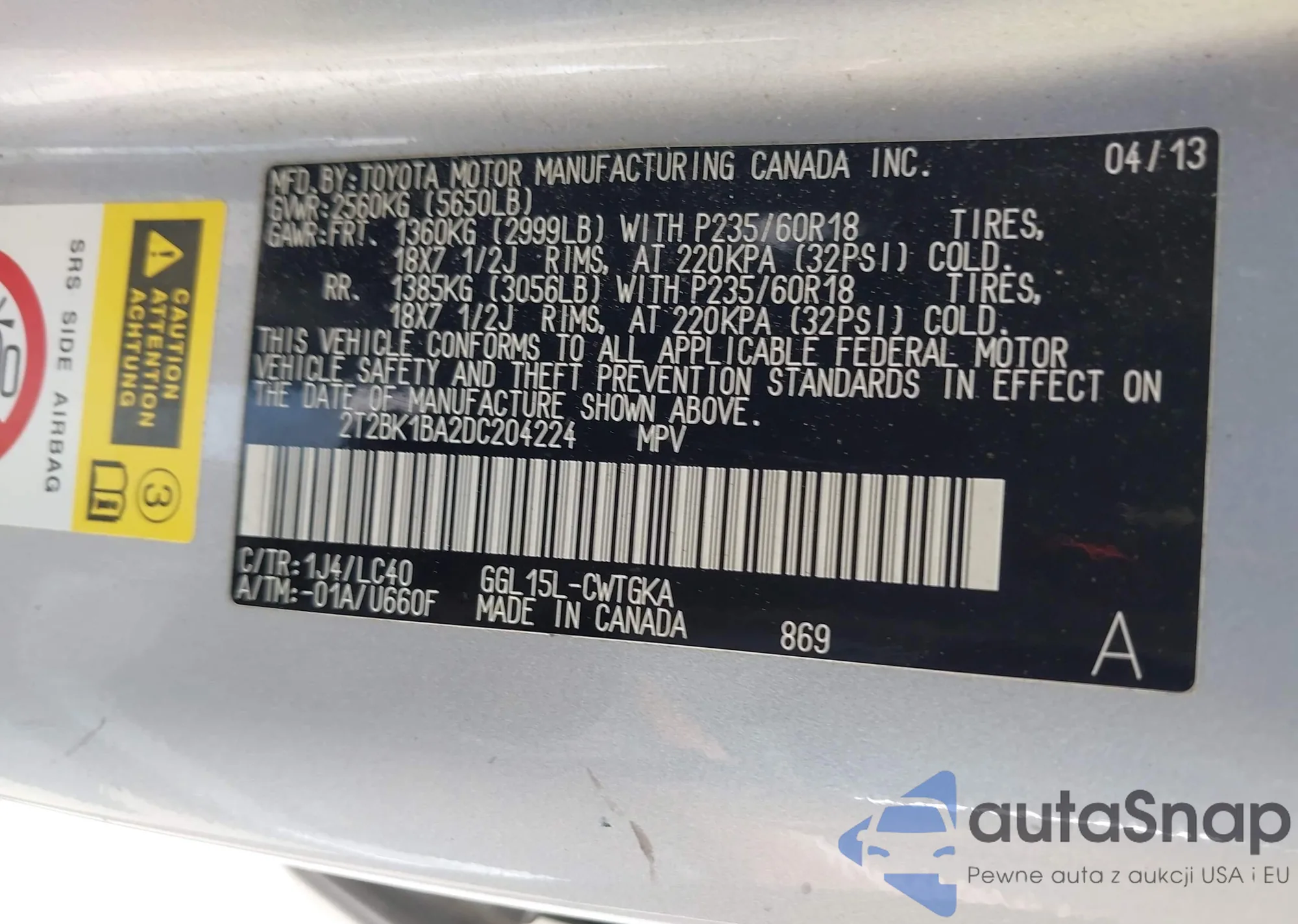 VIN: 2T2BK1BA2DC204224
