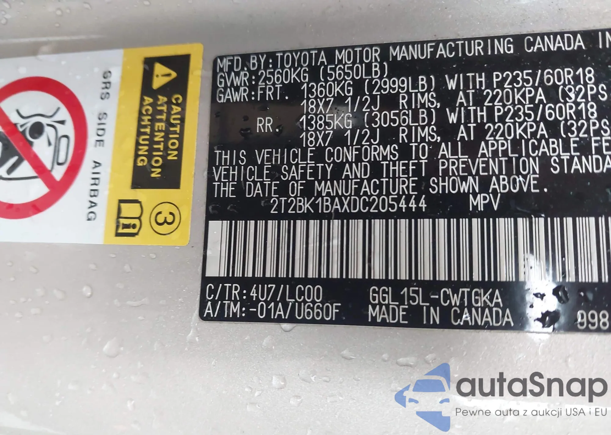 VIN: 2T2BK1BAXDC205444
